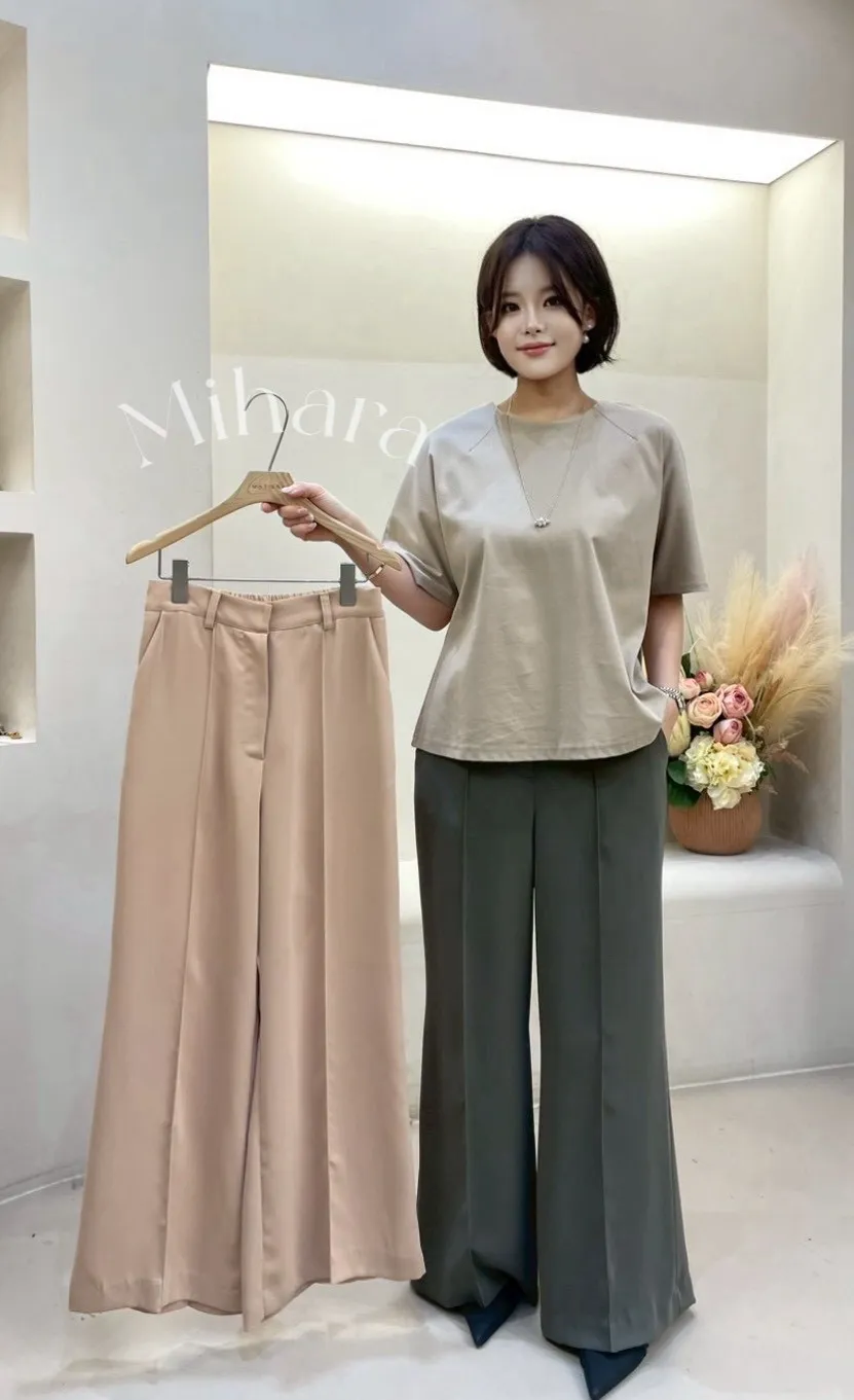 A22 0115可愛歐膩家中線雪紡寬褲2色