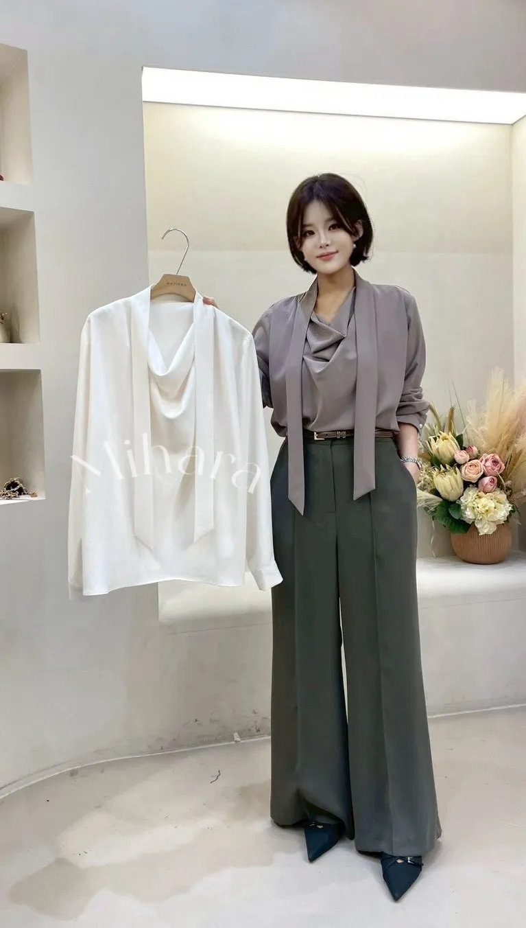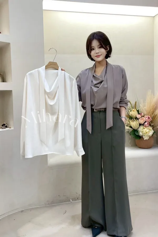 A23 0115可愛歐膩家綁帶垂領雪紡襯衫2色