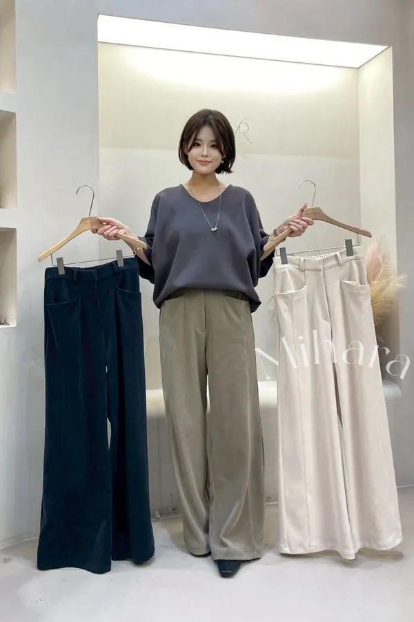 A26 0115可愛歐膩家燈芯絨大口袋直筒褲3色