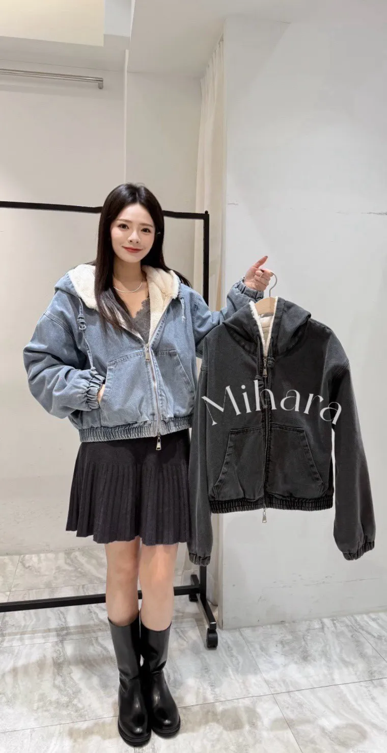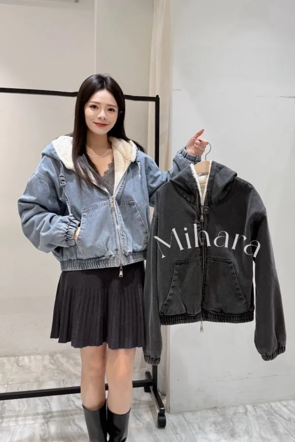 A5 0118CP外套家內毛毛連帽牛仔外套2色