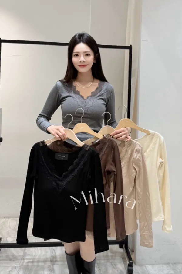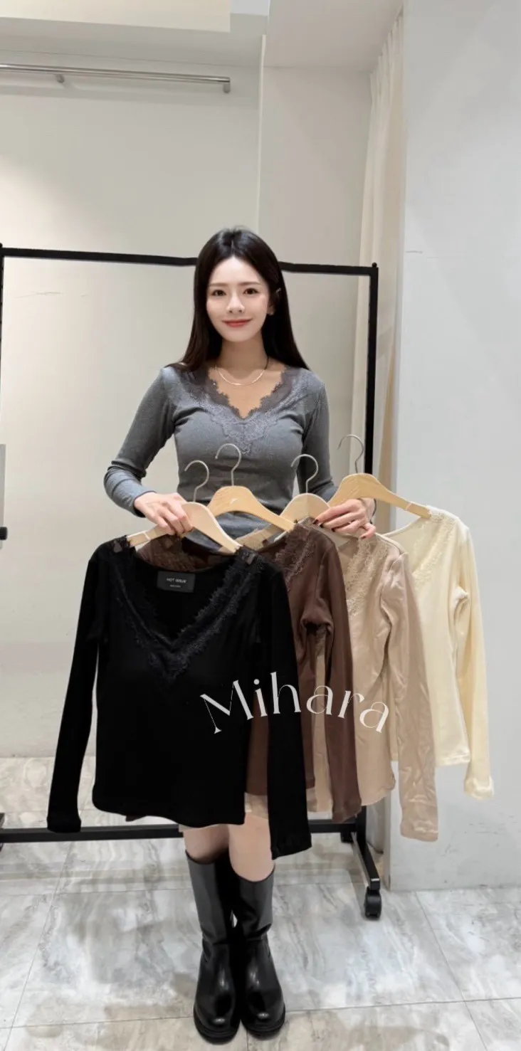 A6 0118CP外套家拼接蕾絲V領內磨毛胸墊上衣5色