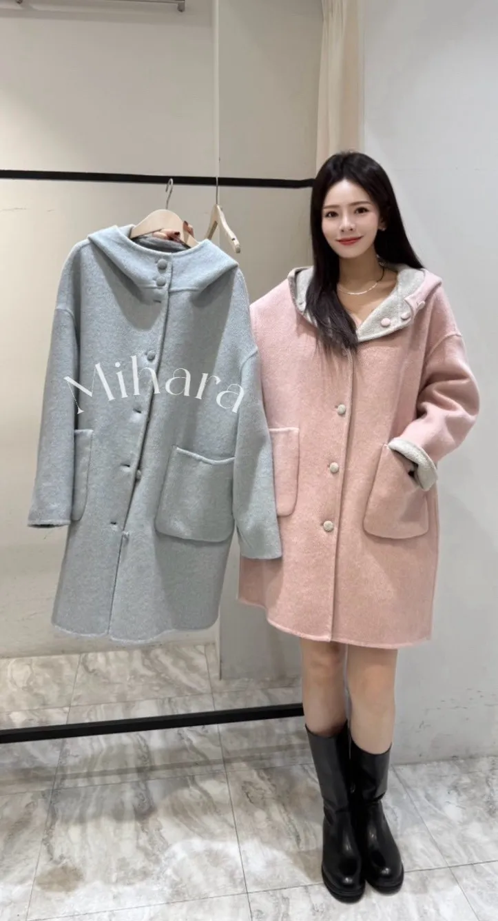 A7 0118CP外套家羊毛100%兩面穿連帽手工大衣外套2色