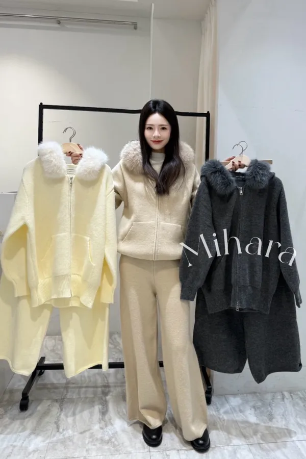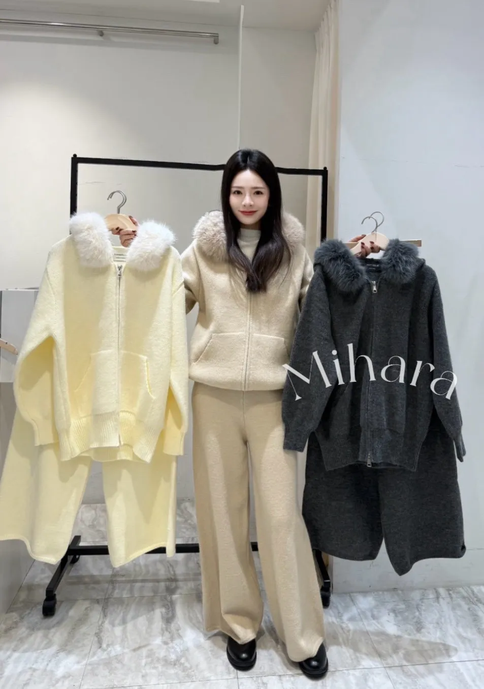 A14 0118CP外套家毛毛連帽針織外套+針織直筒褲(SET)3色