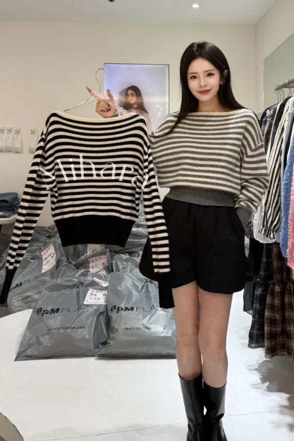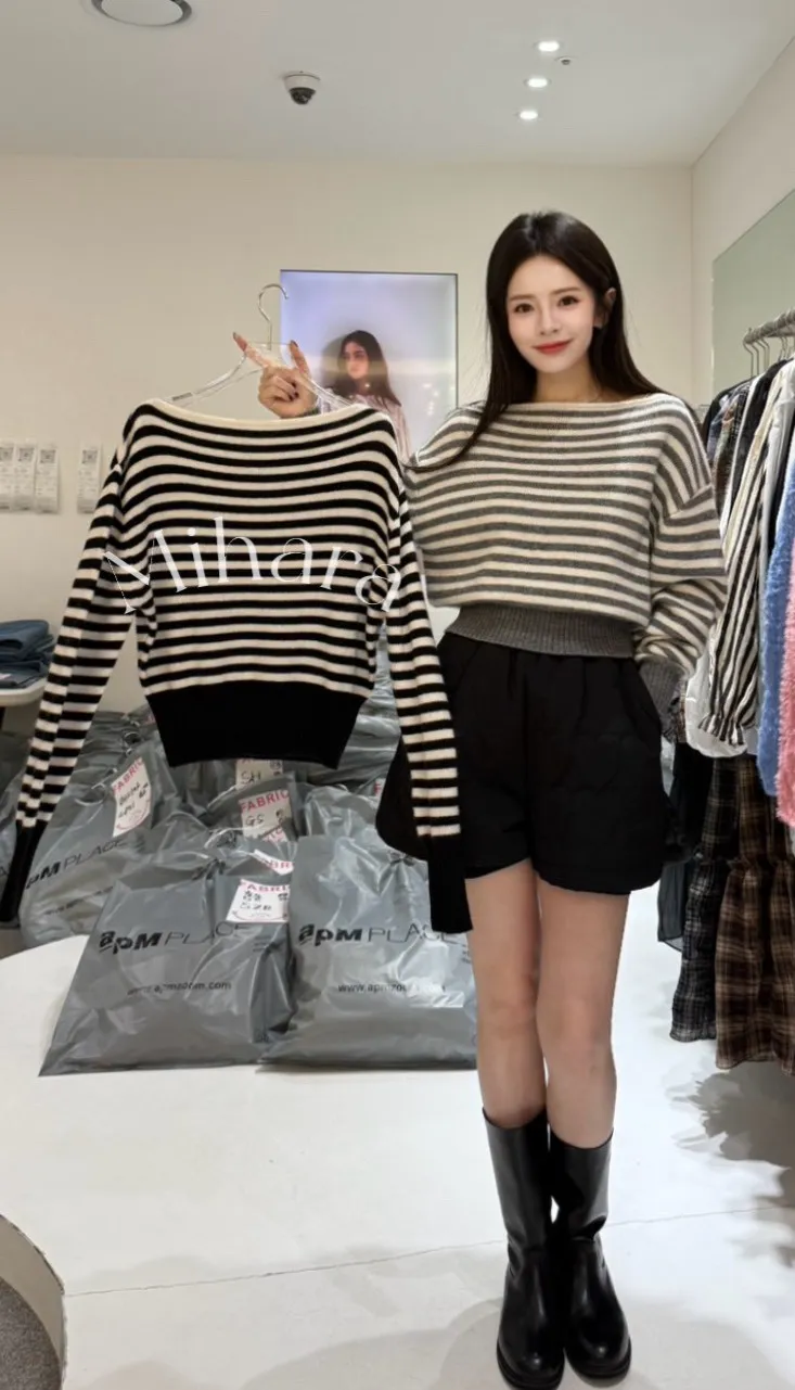 A18 0118(限量特)高檔櫃橫條帆船領上衣2色