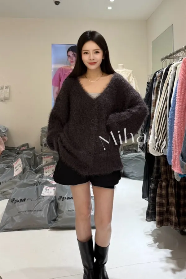 A21 0118(限量特)高檔櫃排釦V領毛毛外套