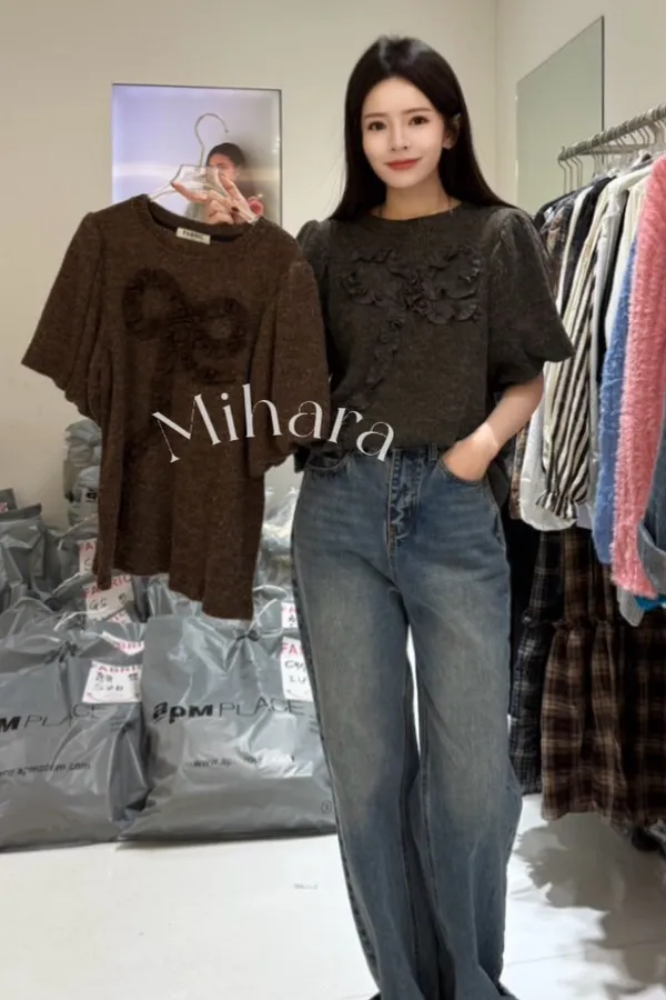 A23 0118(限量特)高檔櫃立體大蝴蝶結圓領針織上衣2色
