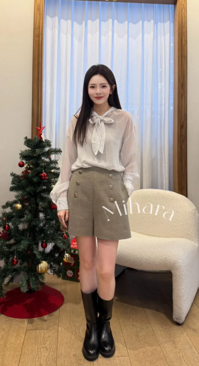 A35 0119(限量特)高檔櫃兩面穿點點綁帶雪紡襯衫