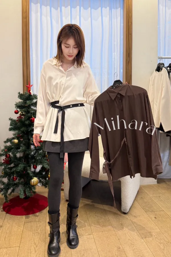 A42 0119(限量特)高檔櫃綁帶襯衫2色