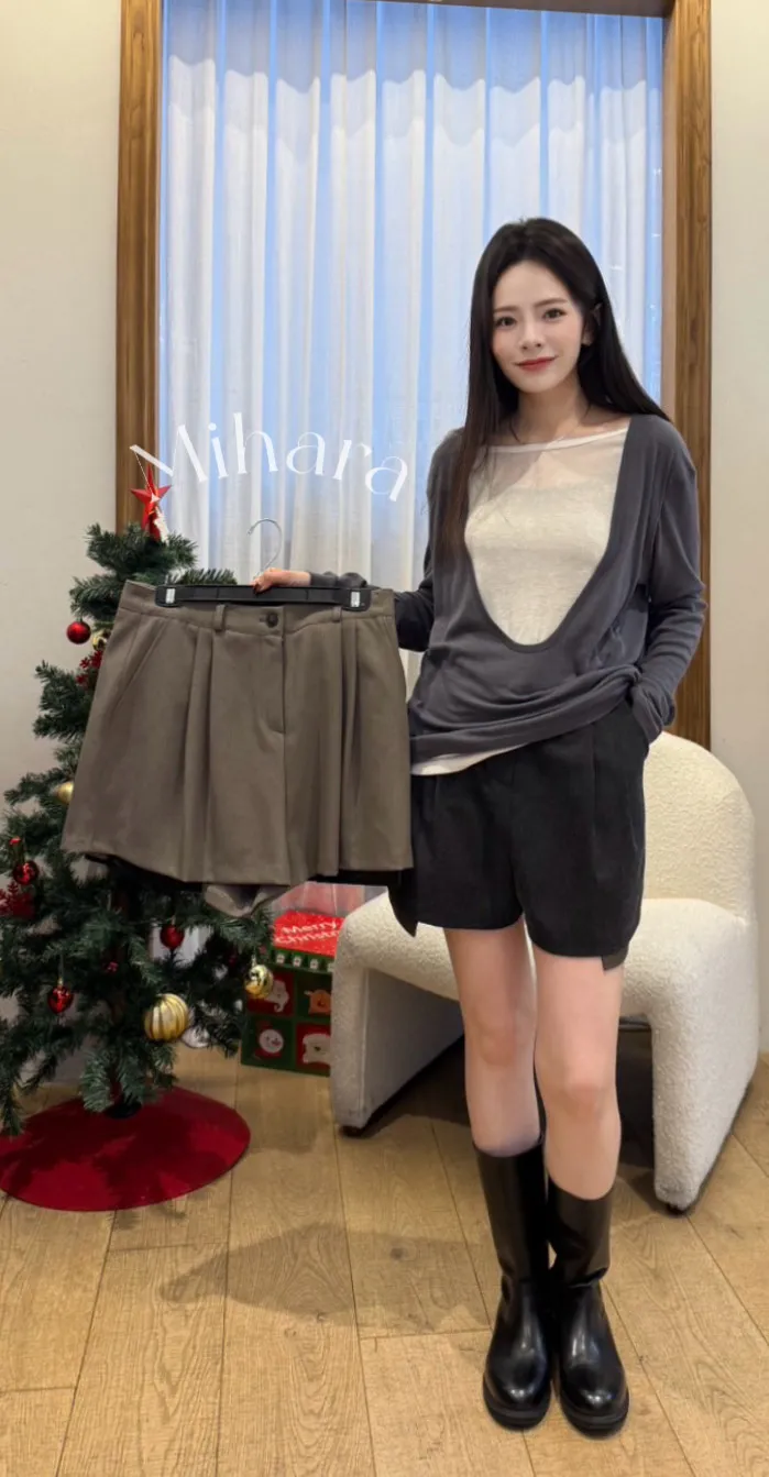 A47 0119(限量特)高檔櫃天絲混麻立體壓褶短褲2色(S/M)