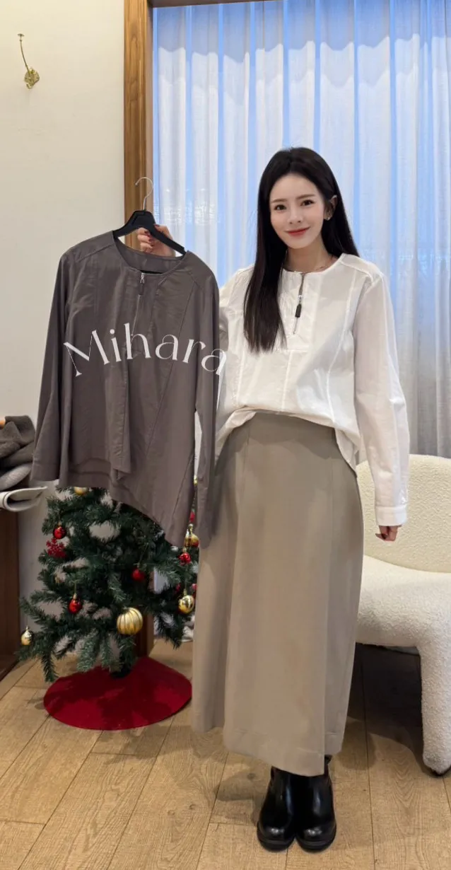 A58 0119(限量特)高檔櫃拉鍊圓領棉質上衣2色
