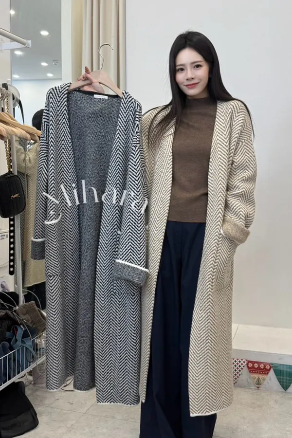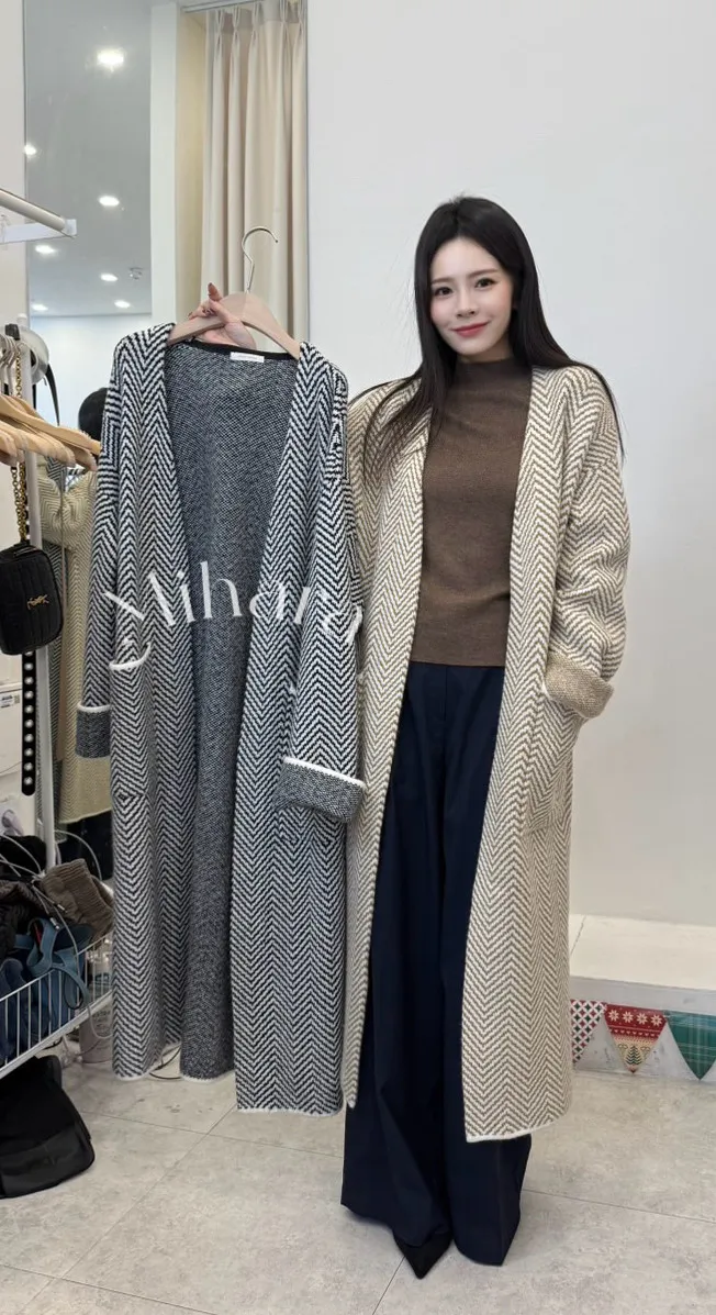 A76 0119(限量特)舒服好穿家長版人字紋針織開襟外套2色