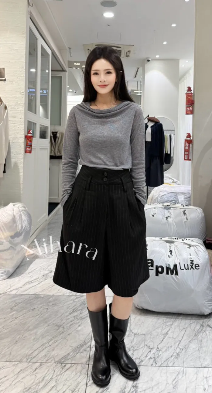 A100 0120(限量特)高檔設計家立體壓褶直紋六分褲(S/M)