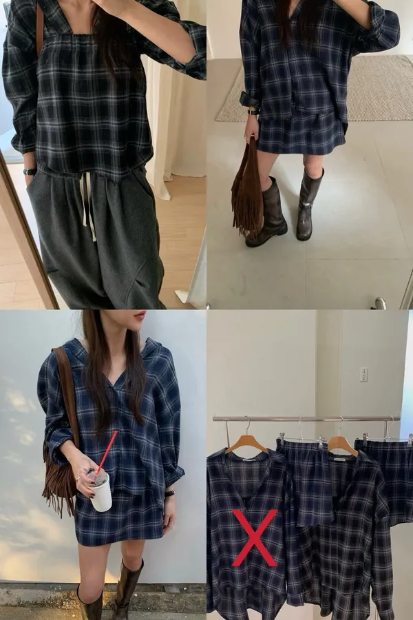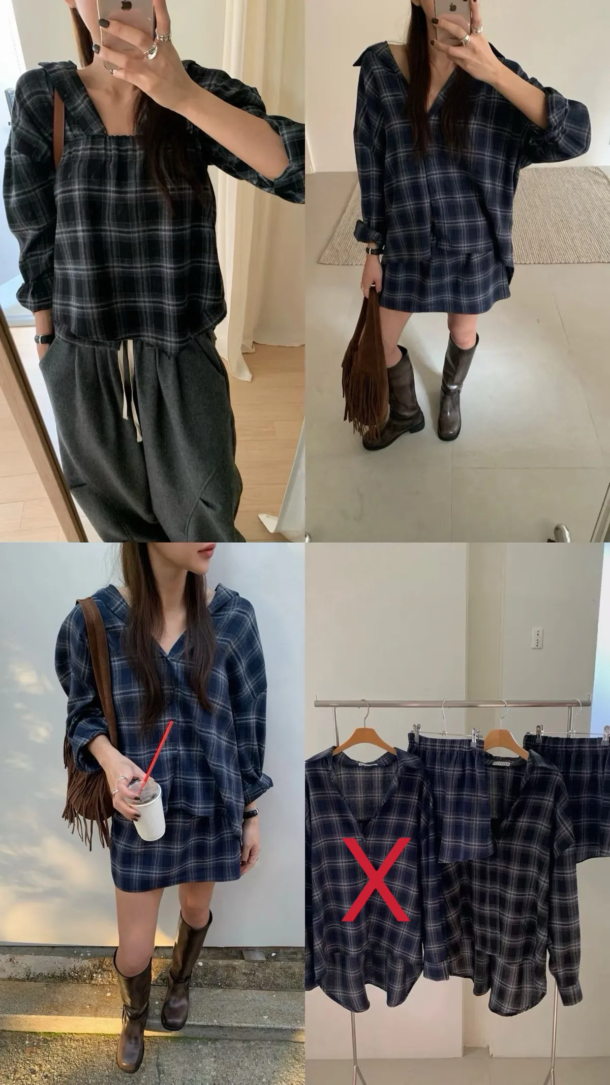 A101 0120(限量特)高檔設計家格紋襯衫+兩穿格紋短裙背心(SET)
