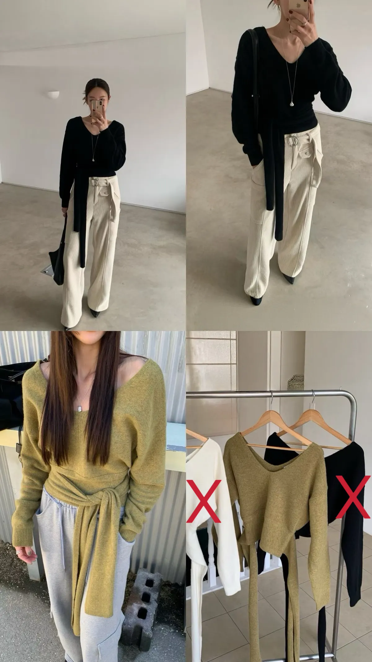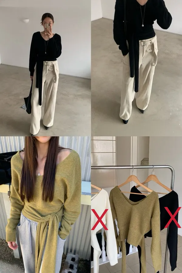 A103 0120(限量特)高檔設計家後綁帶V領針織毛衣2色