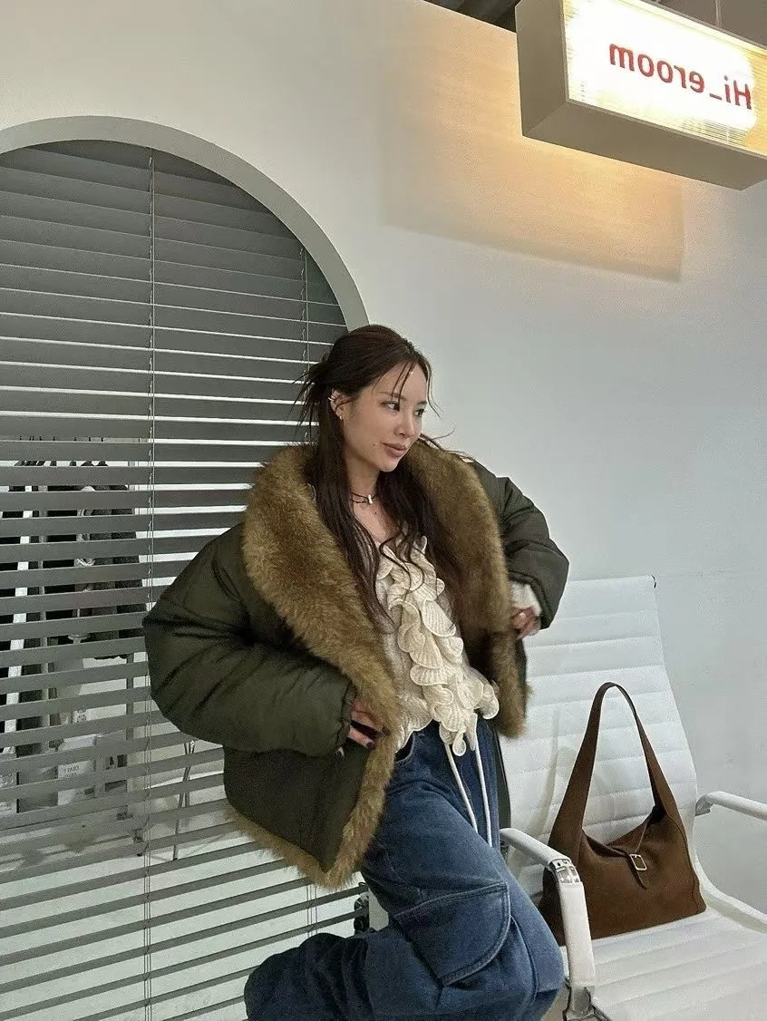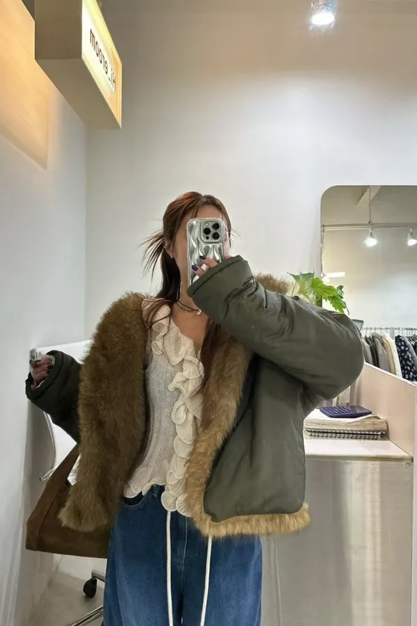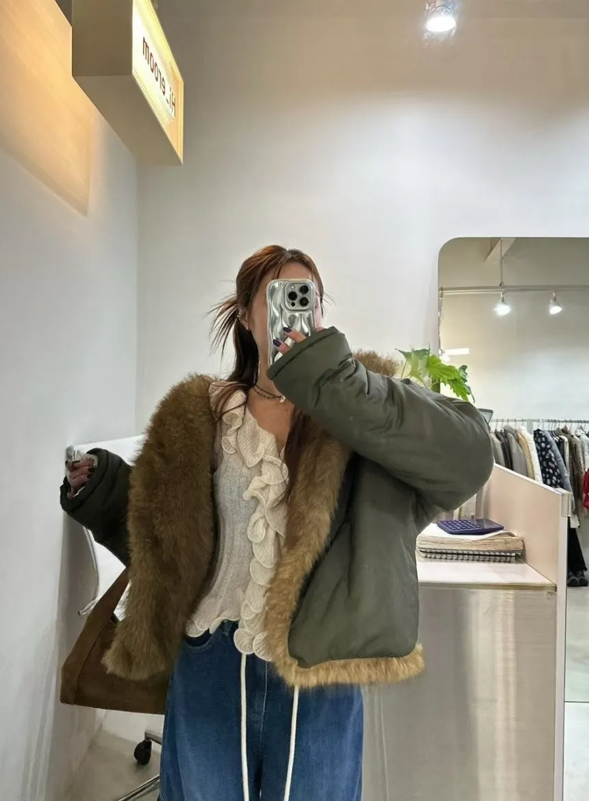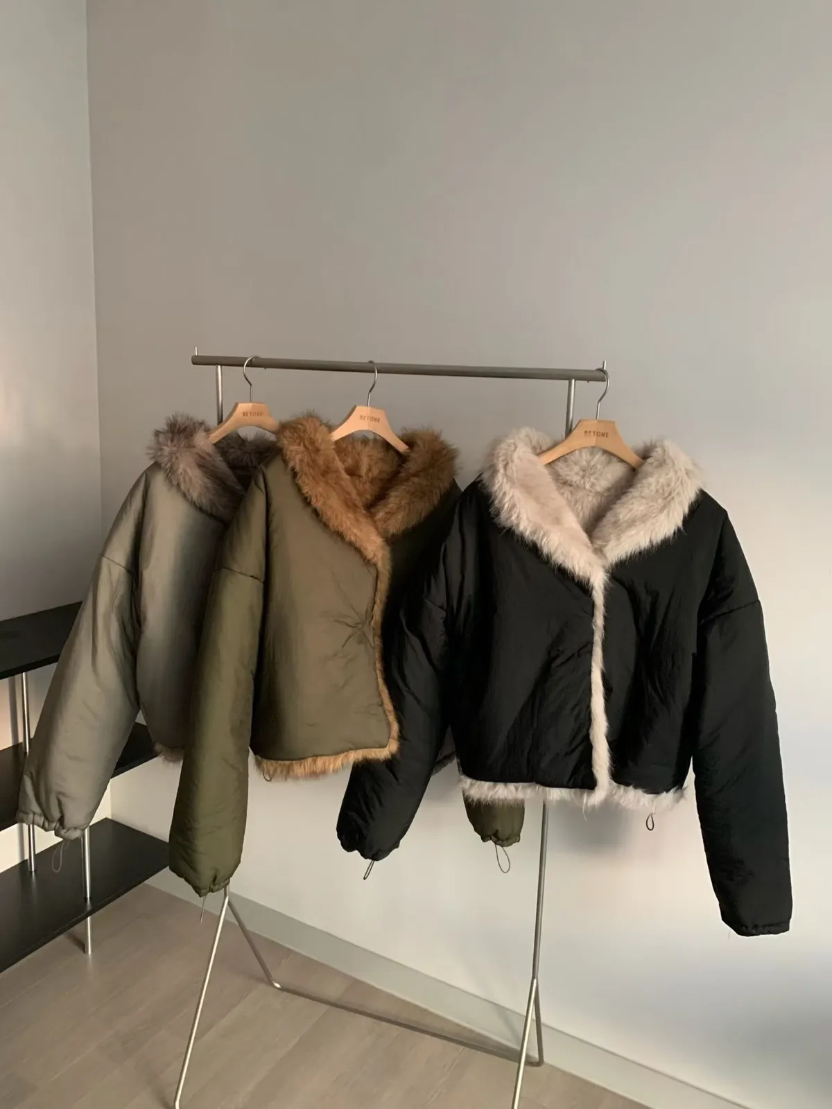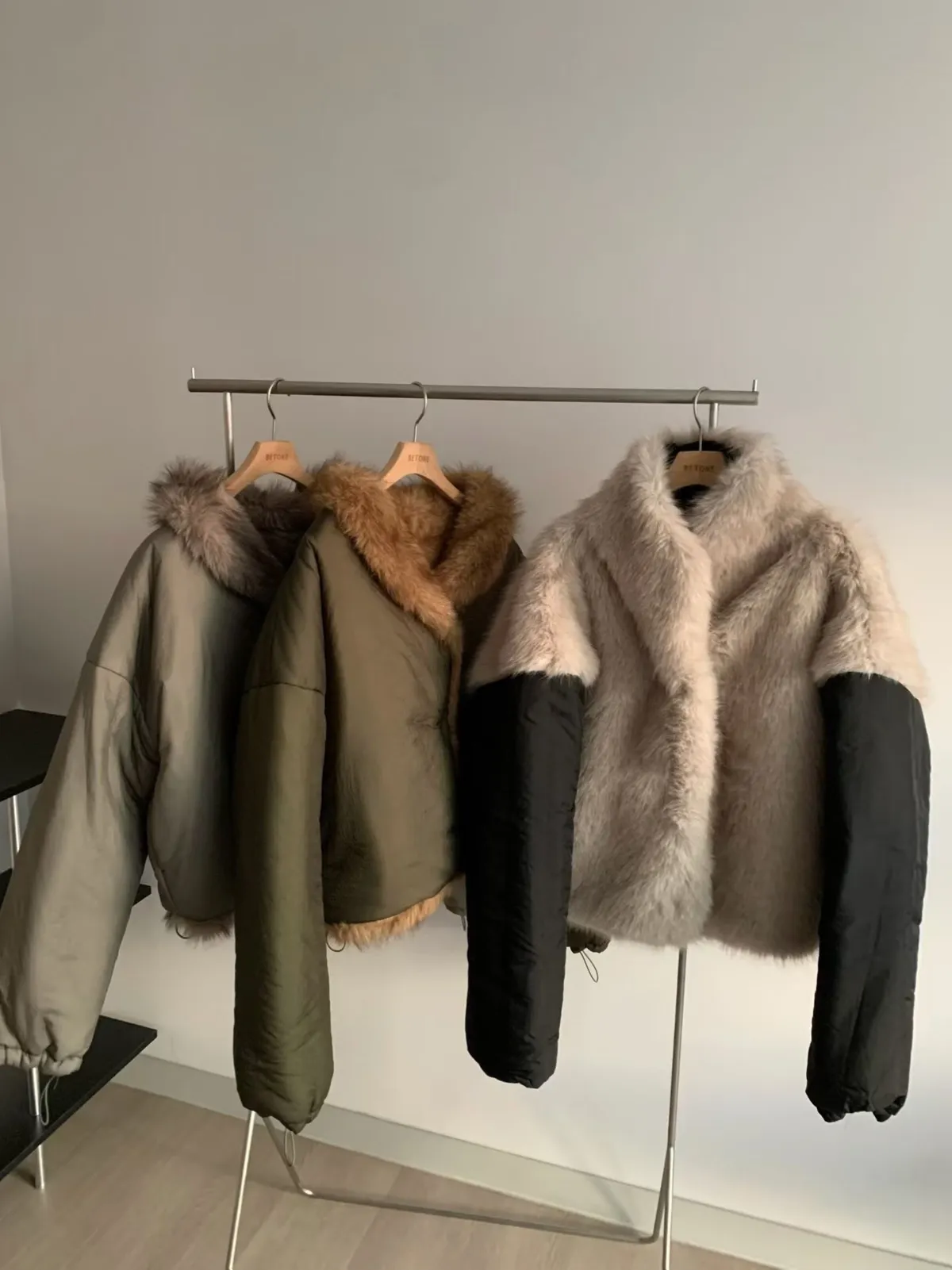 A106 0120高檔設計家兩面穿半領毛毛鋪棉外套3色