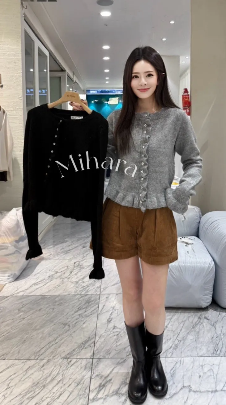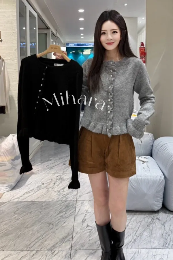 A93 0120(限量特)高檔設計家荷葉下擺排釦圓領羊毛針織毛衣2色