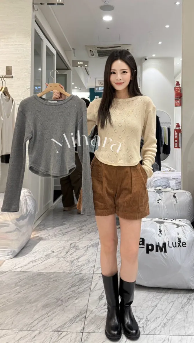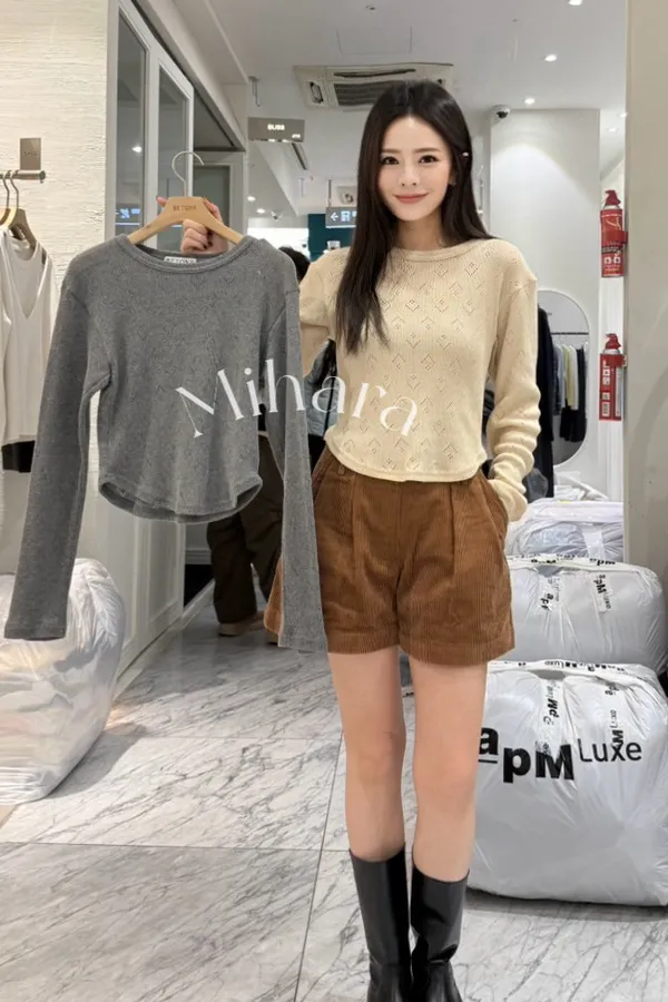 A94 0120(限量特)高檔設計家簍空菱格圓領針織上衣2色