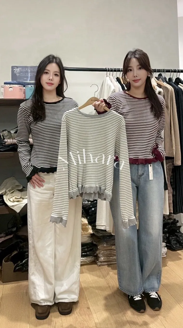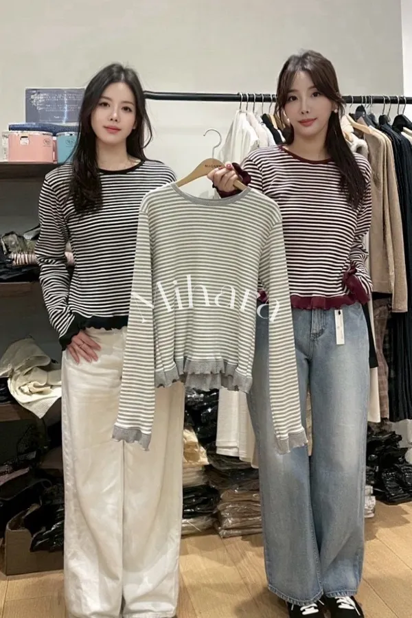 A20 0123小香家圓領條紋棉95彈性5%上衣