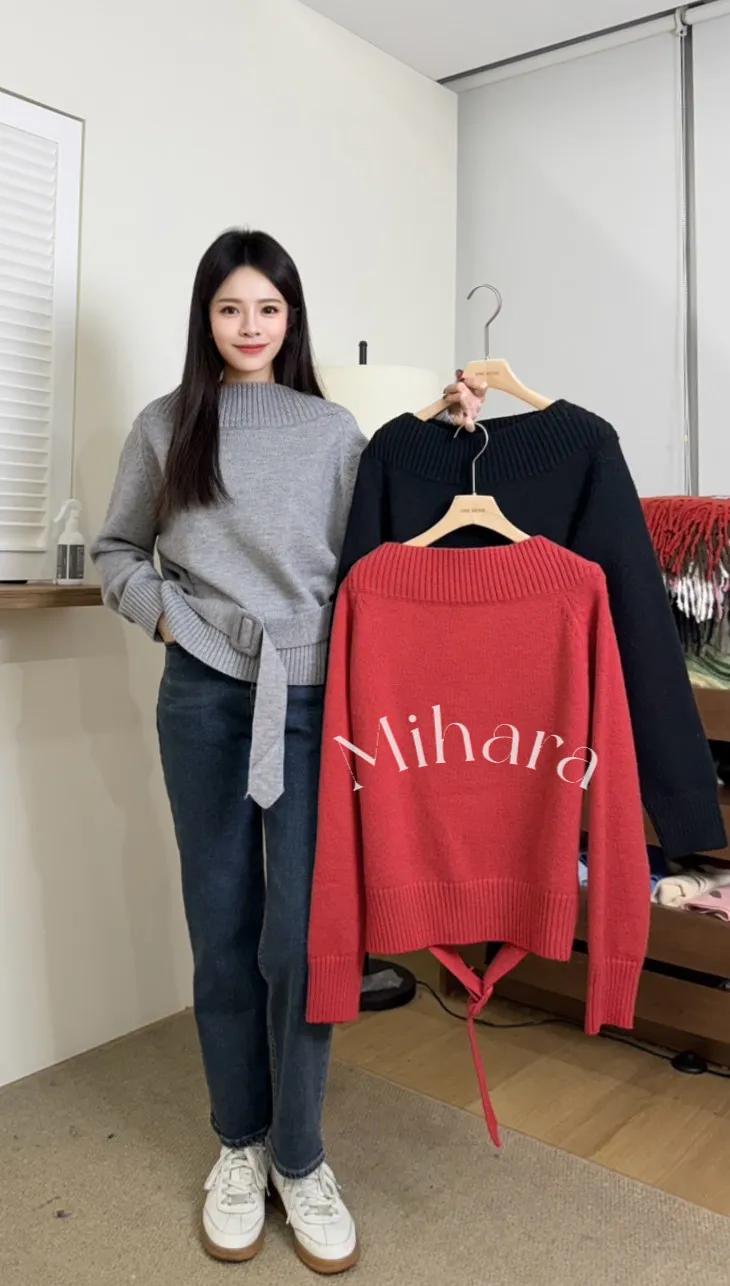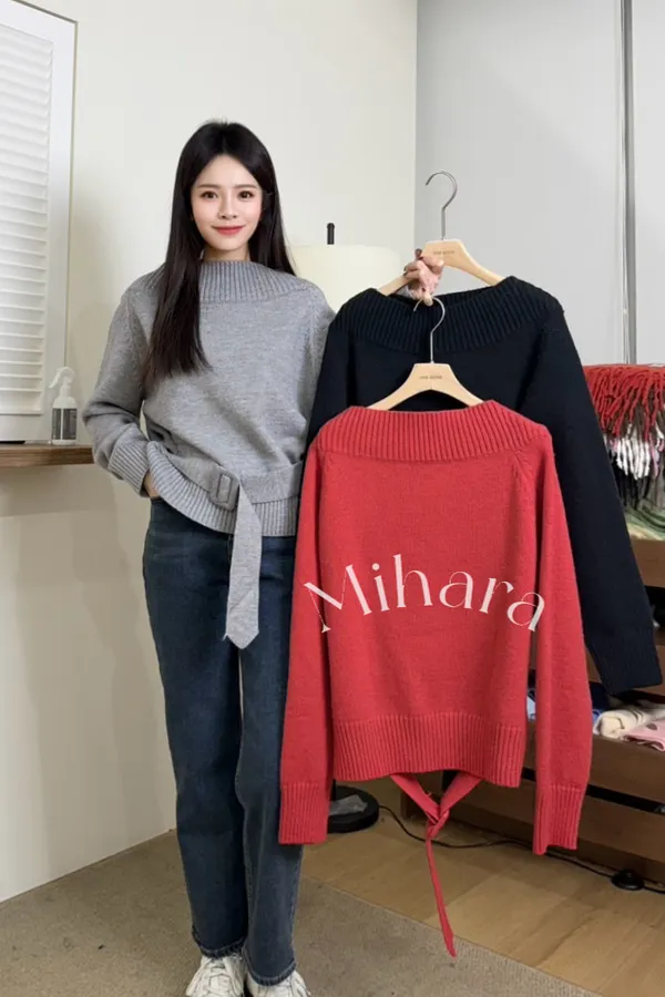 A100 0125(限量特)高檔針織家腰帶圓領針織毛衣3色