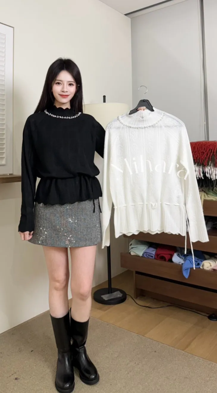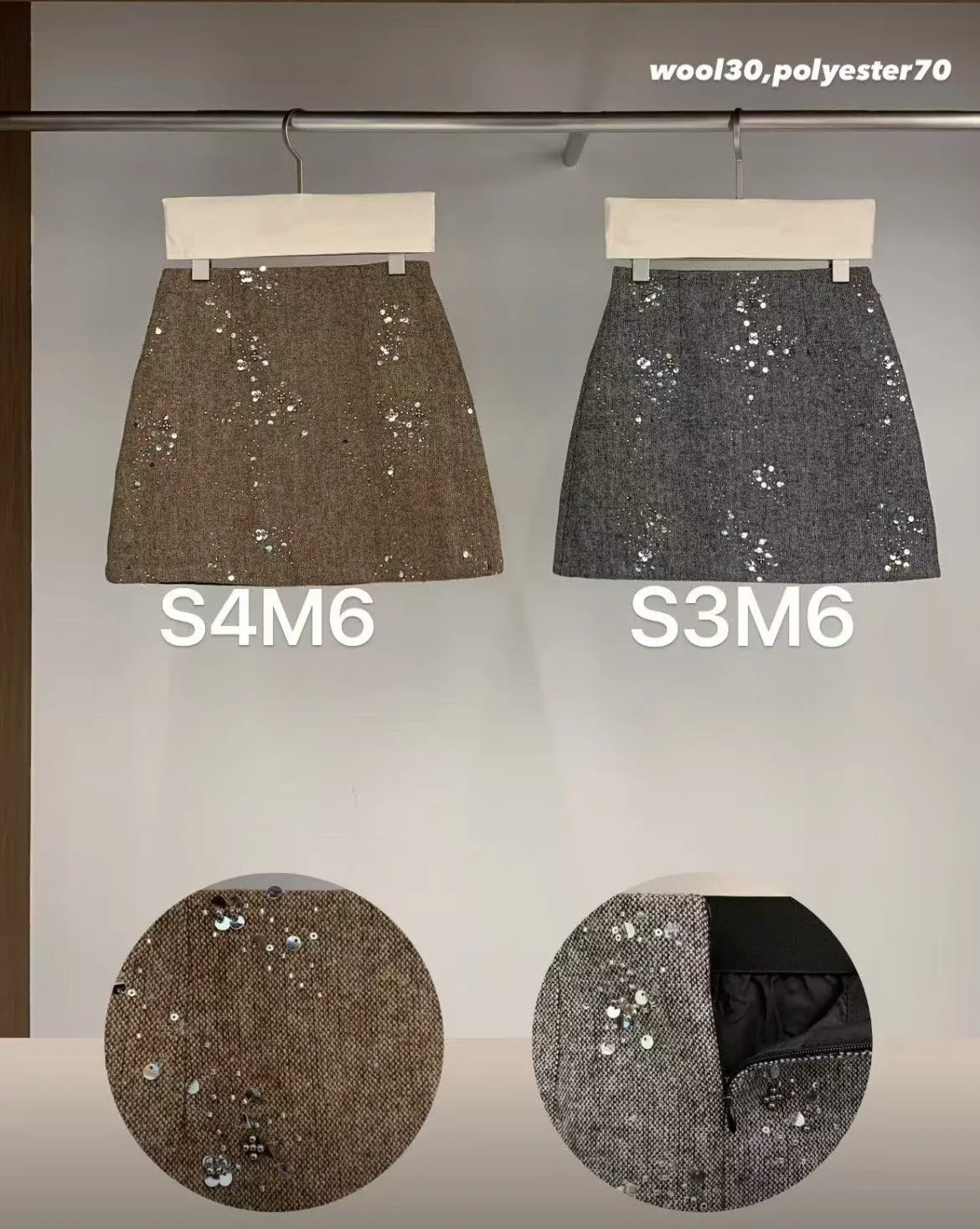 A104 0125(限量特)高檔針織家拼接亮片A字羊毛30%小香短褲裙2色(S/M)