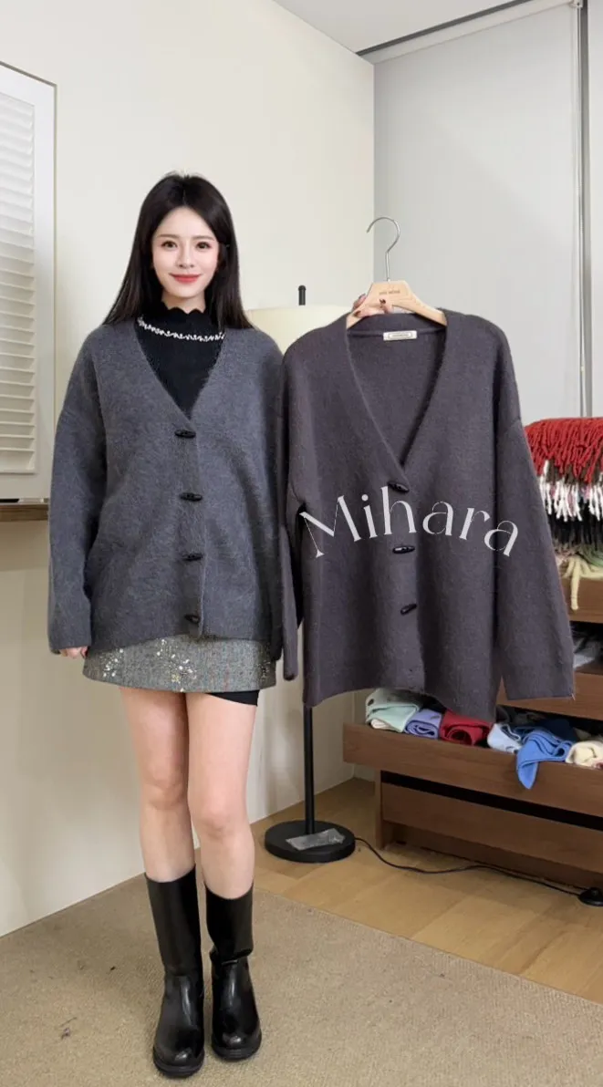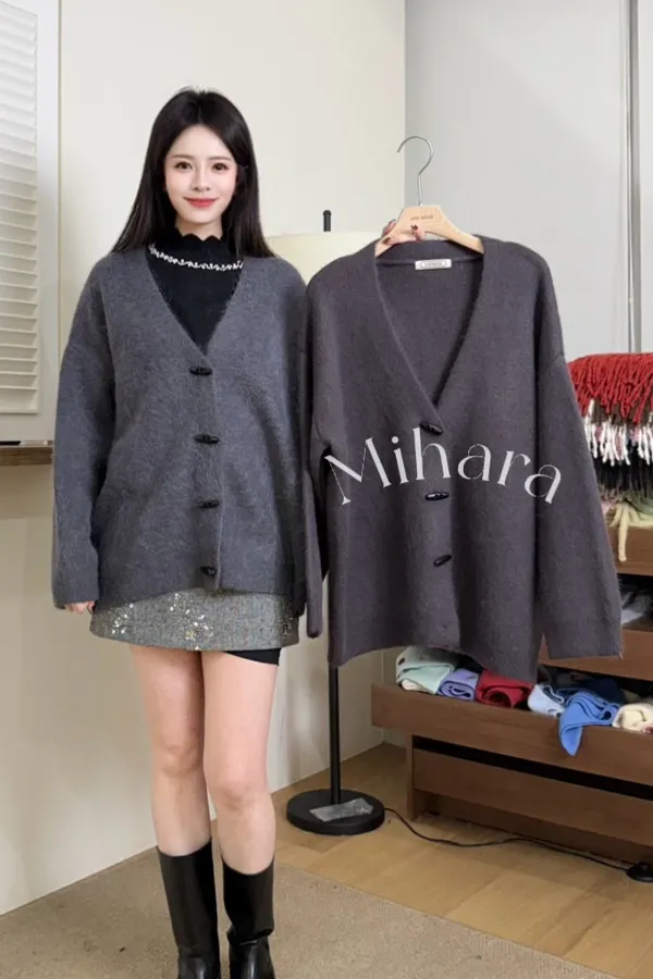 A105 0125(限量特)高檔針織家牛角釦V領兔毛10%針織外套2色