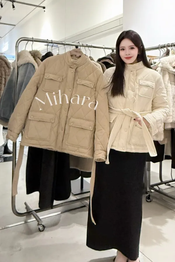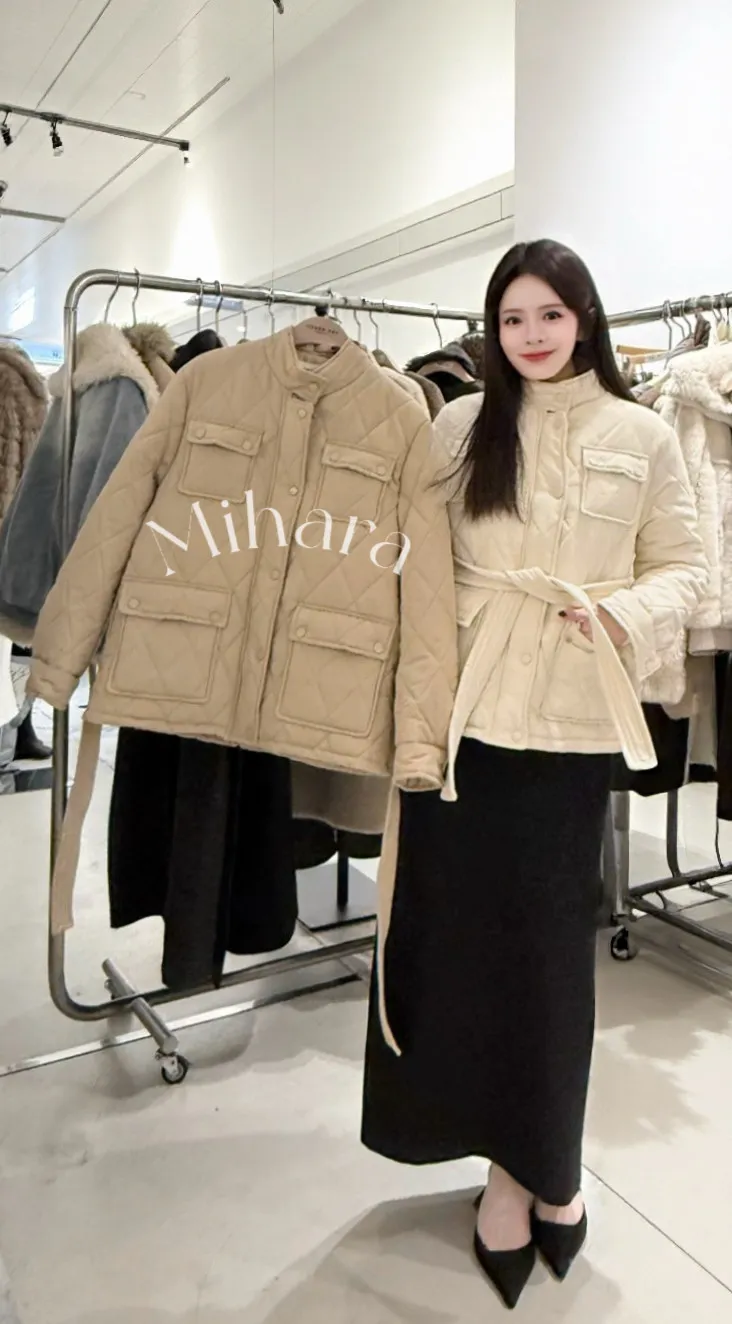 A4 0126(限量特)高檔外套家口袋鋪棉外套附腰帶2色