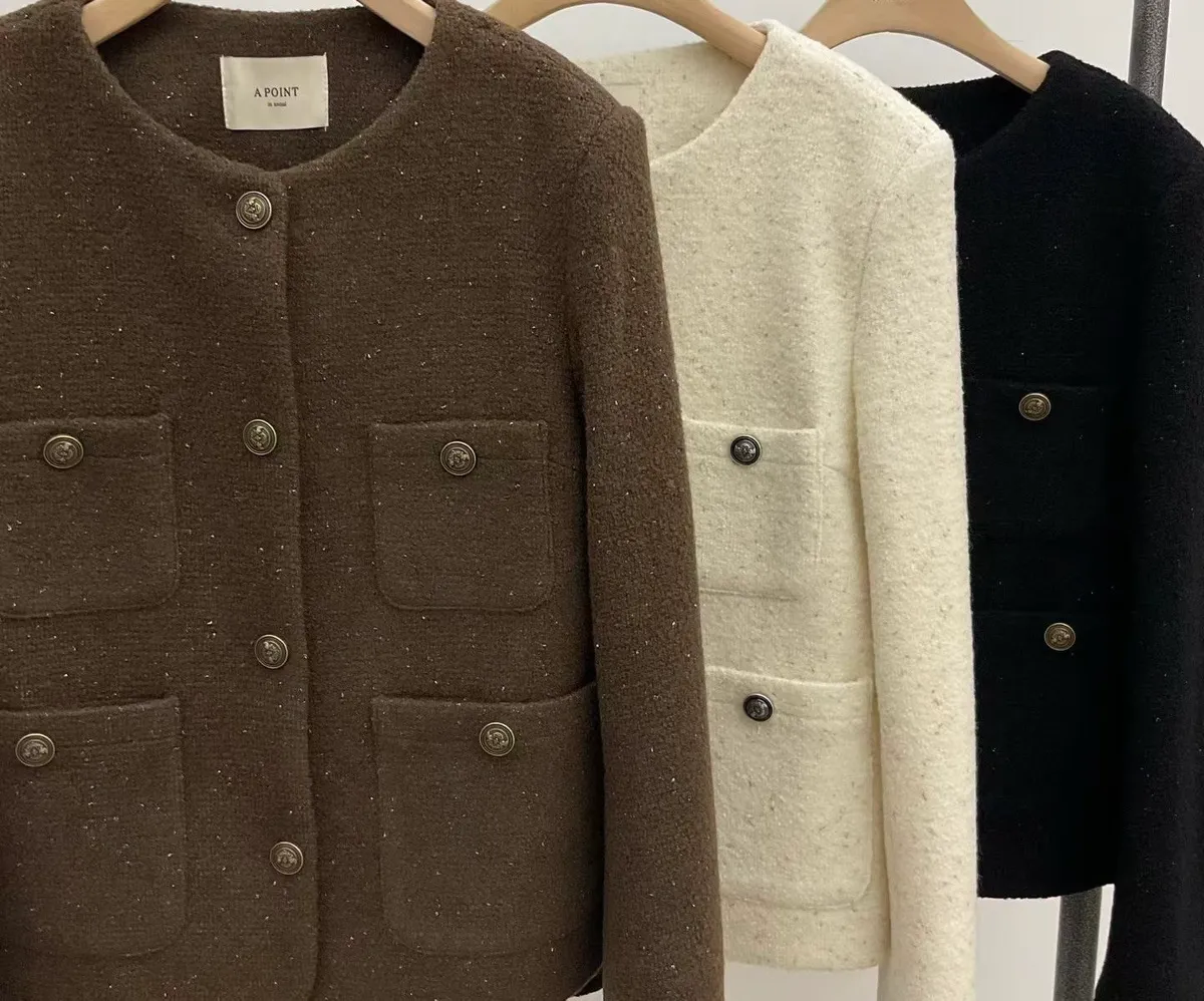 A17 0126(限量特)高檔貴婦家羊毛47%口袋圓領小香外套