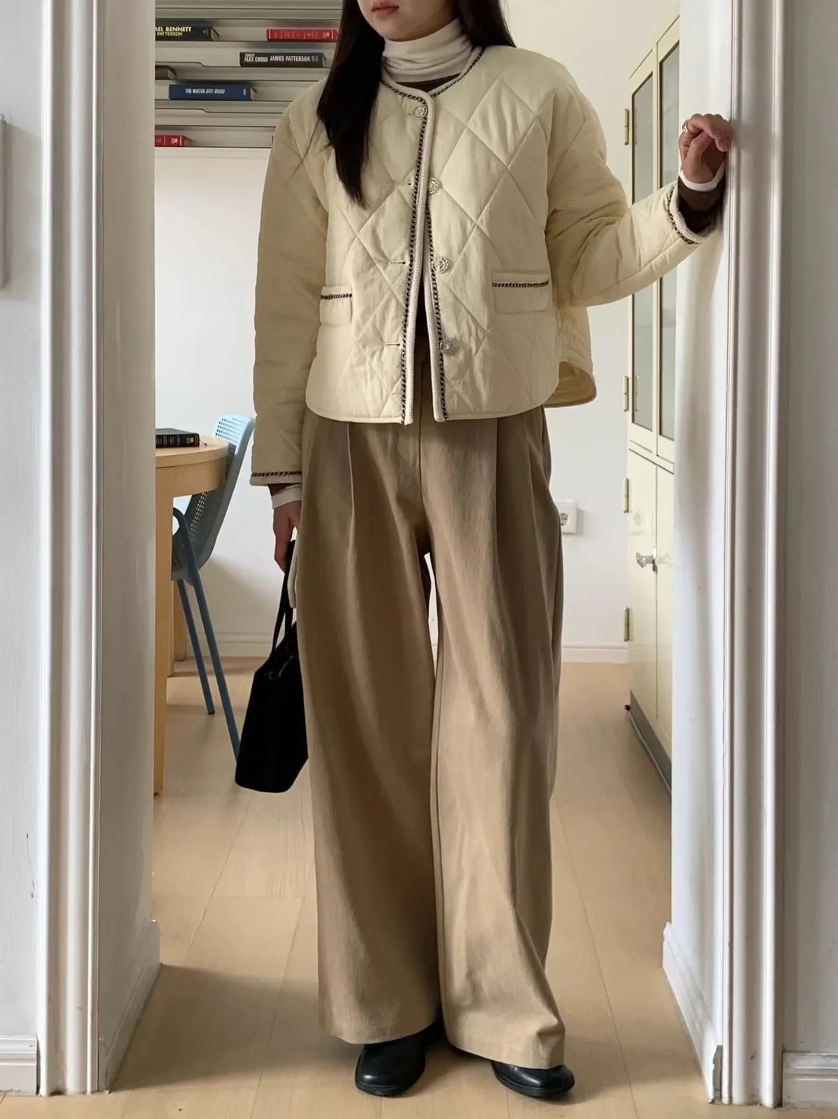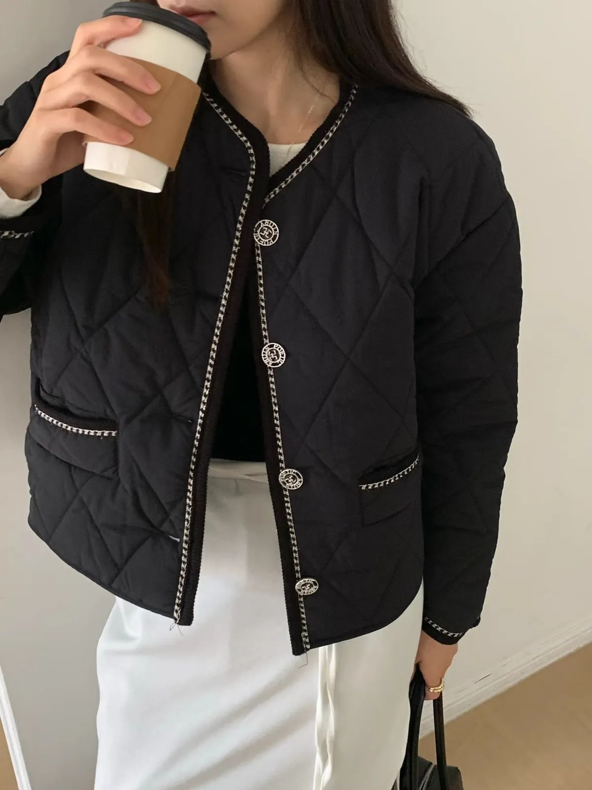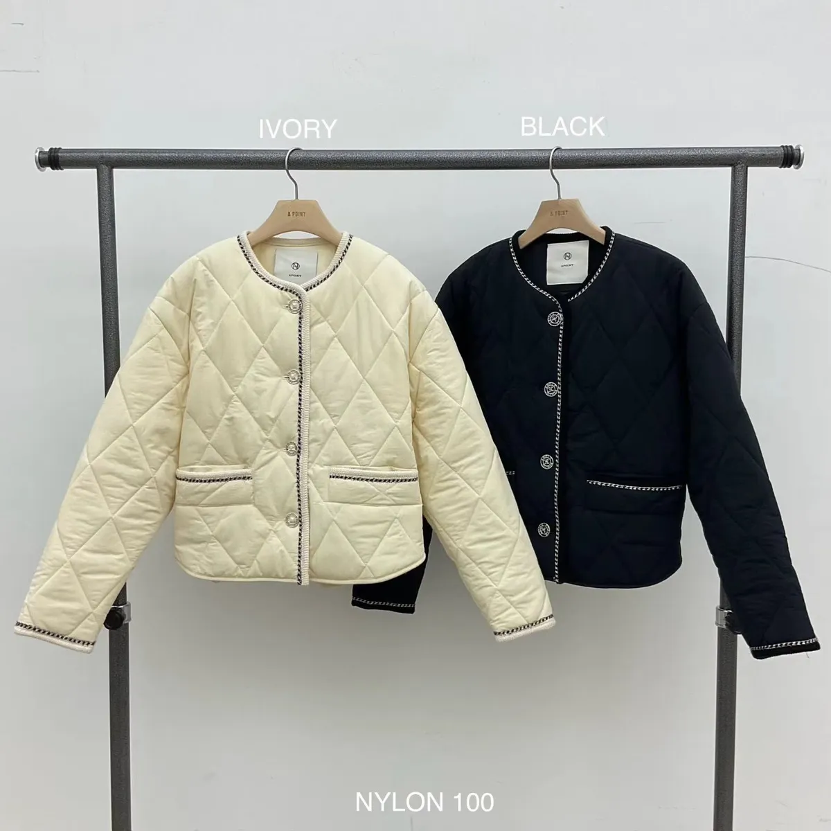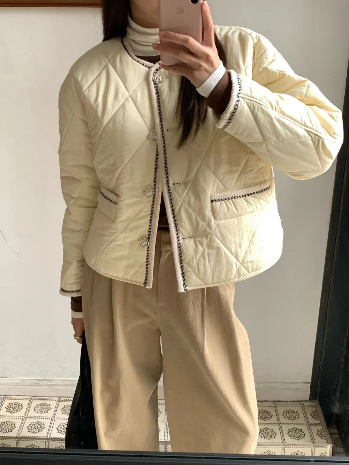 A19 0126(限量特)高檔貴婦家菱格紋圓領鋪棉小香外套2色