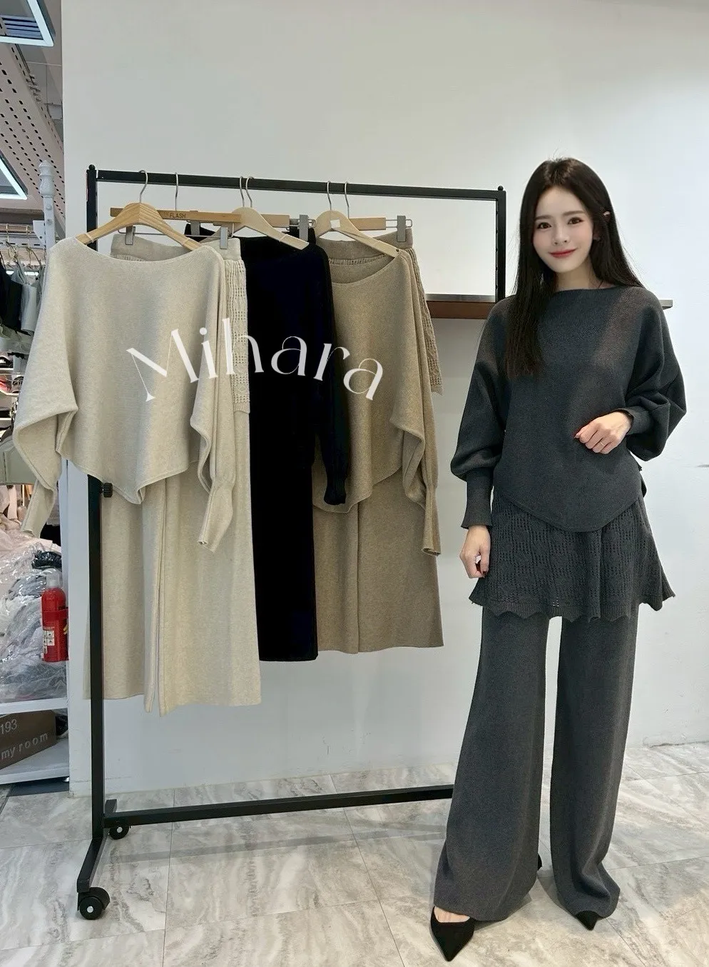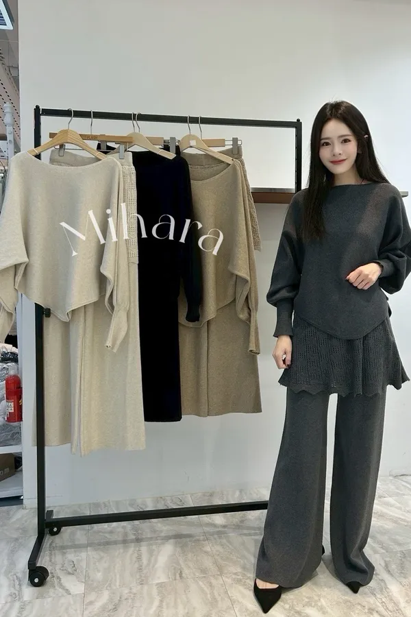 A39 0127CP外套家帆船領針織上衣+小短裙微喇叭褲(SET)4色