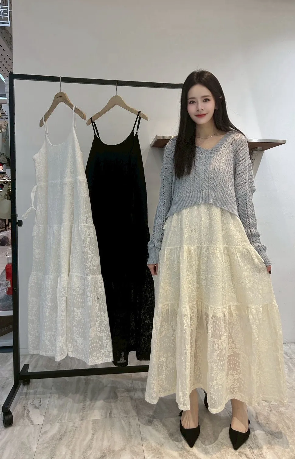 A52 0127CP外套家細肩帶蕾絲蛋糕裙背心洋裝3色