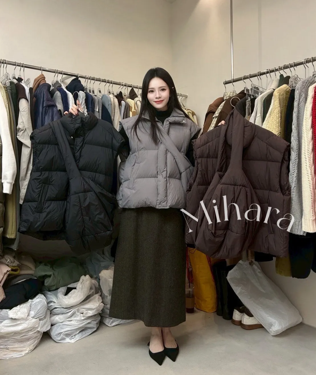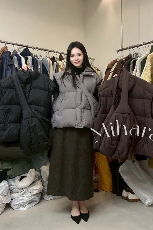 A54 0127(限量特)高檔設計家鴨絨高領背心+大包包(SET)3色