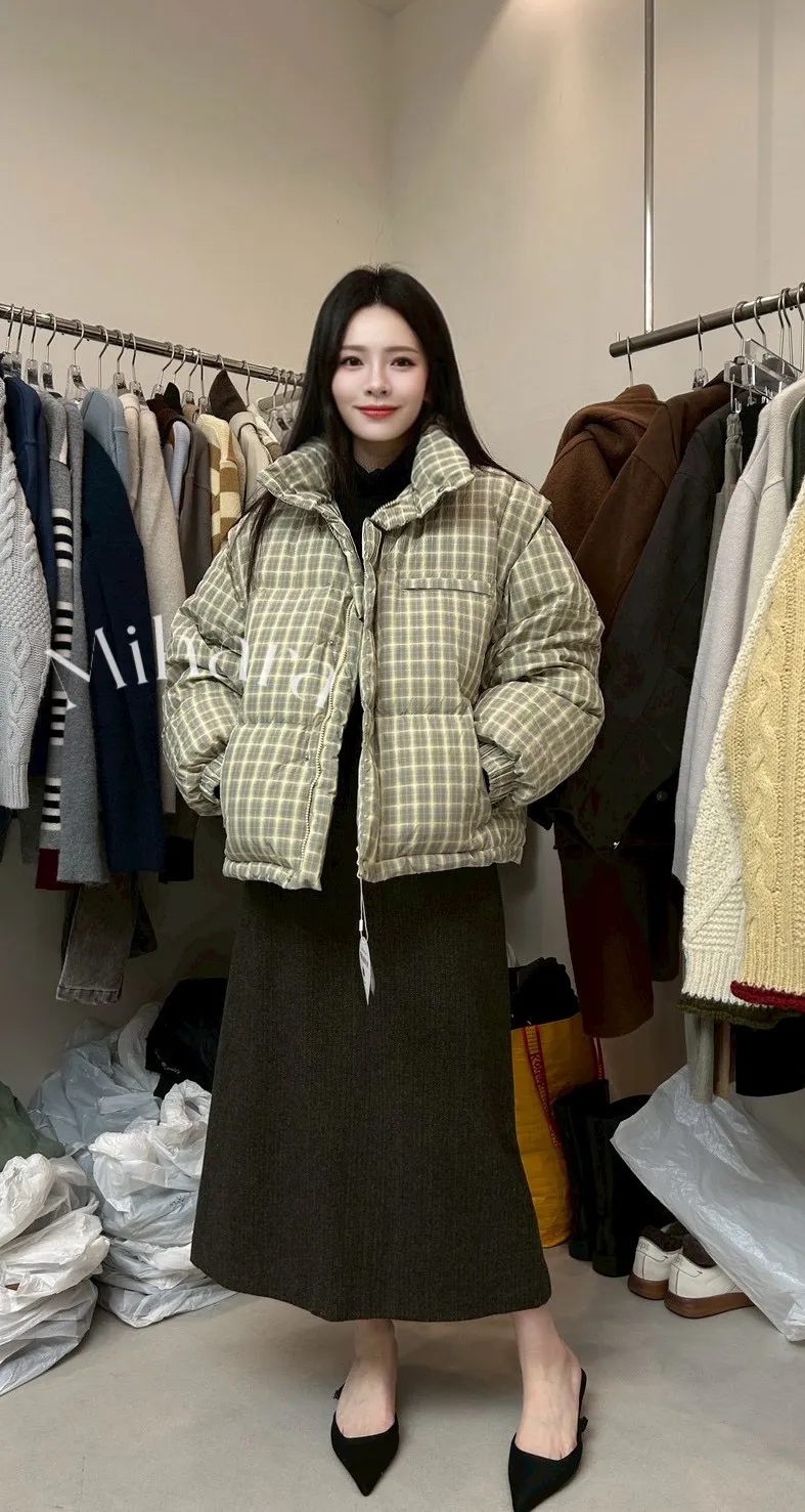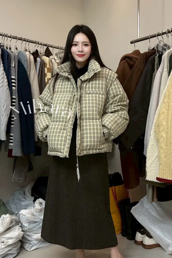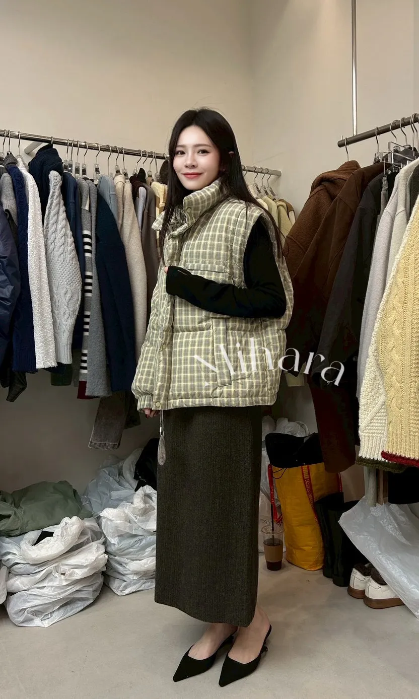 A56 0127(限量特)高檔設計家鴨絨兩穿式格紋外套背心