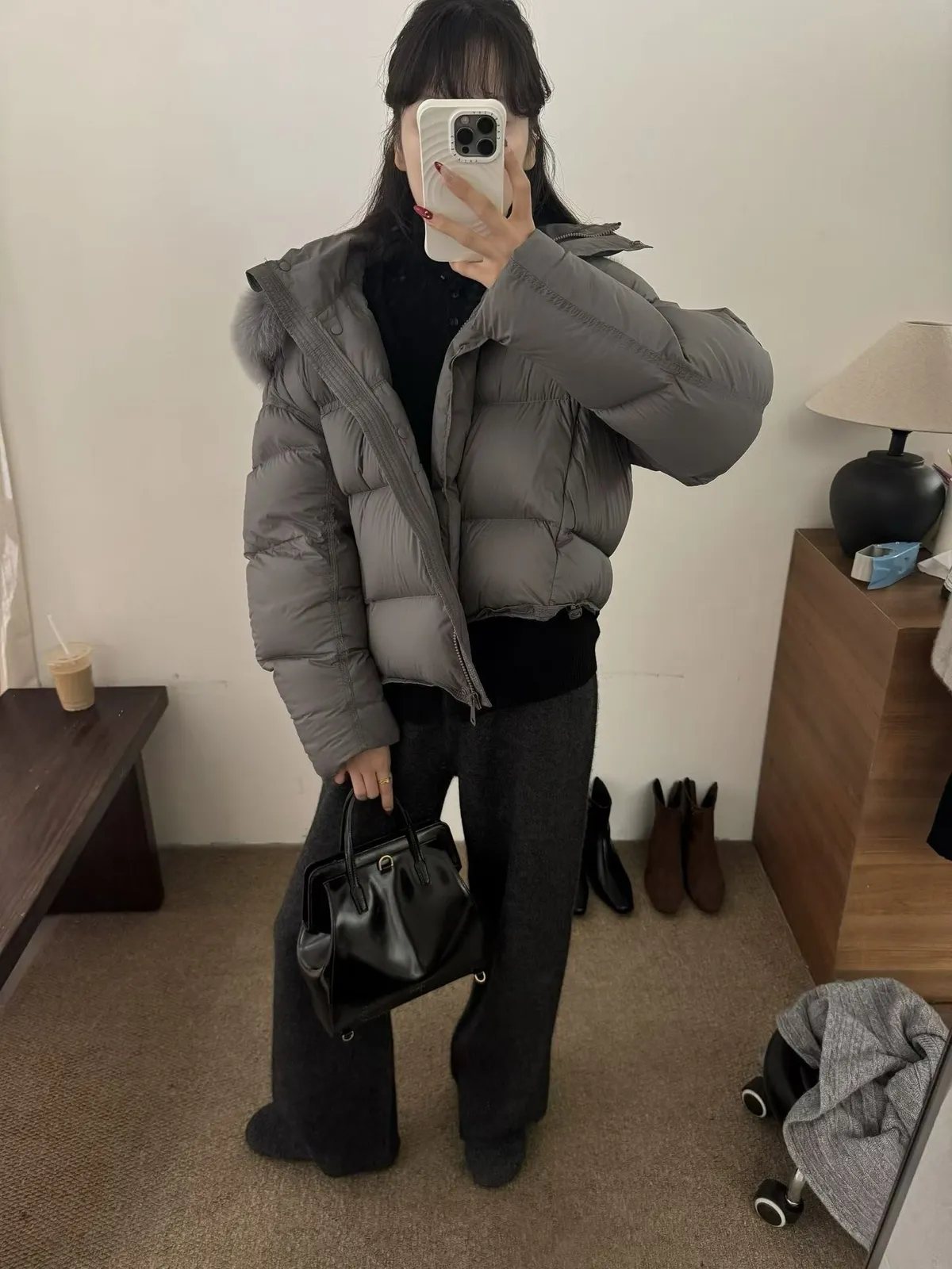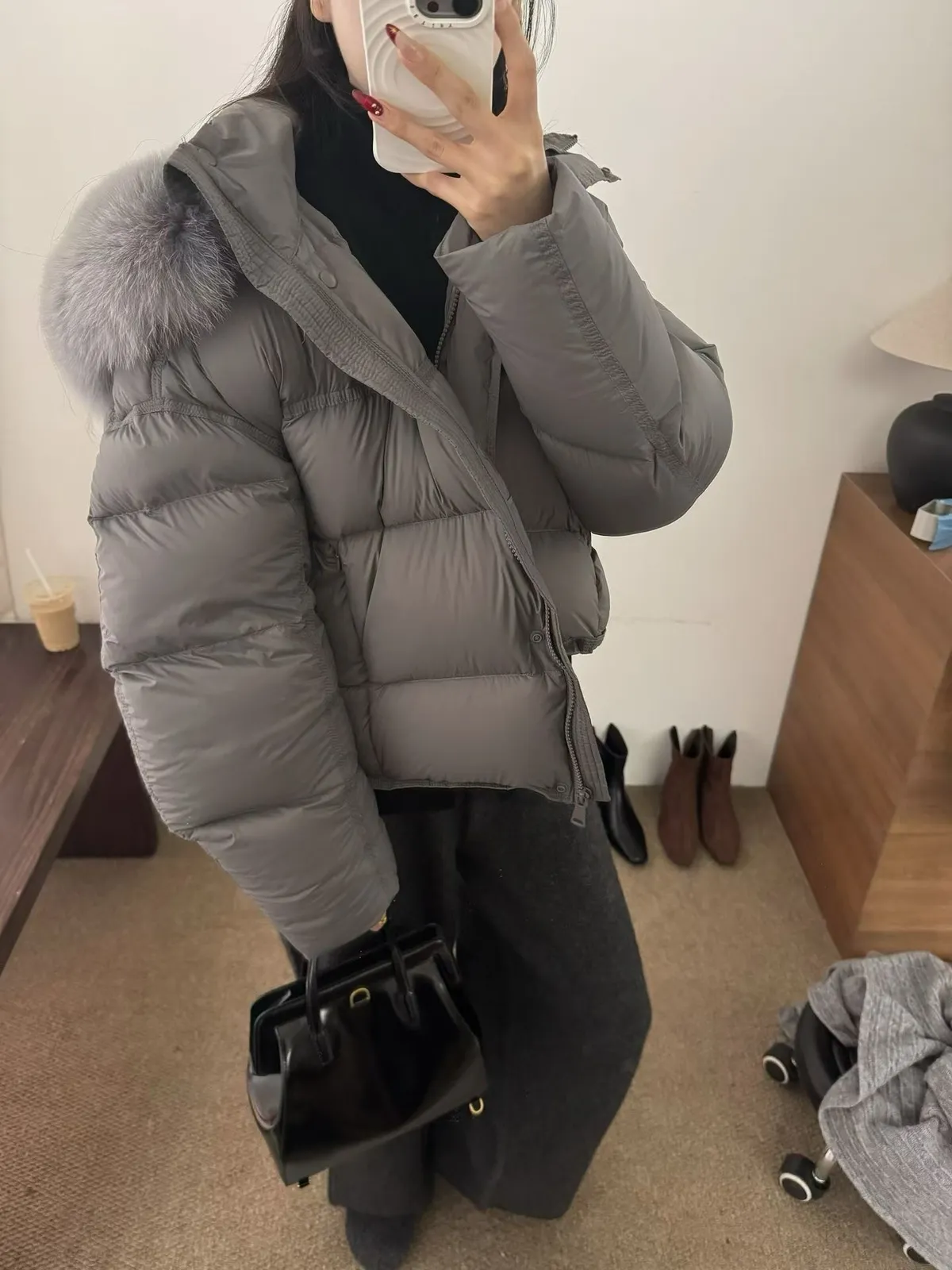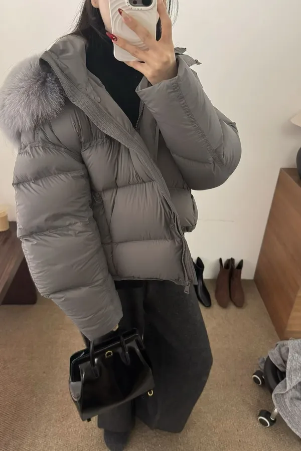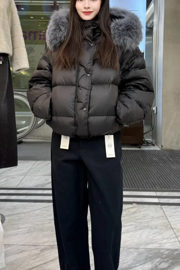 A11 0128(限量特)高檔質感家毛毛連帽鴨絨外套2色