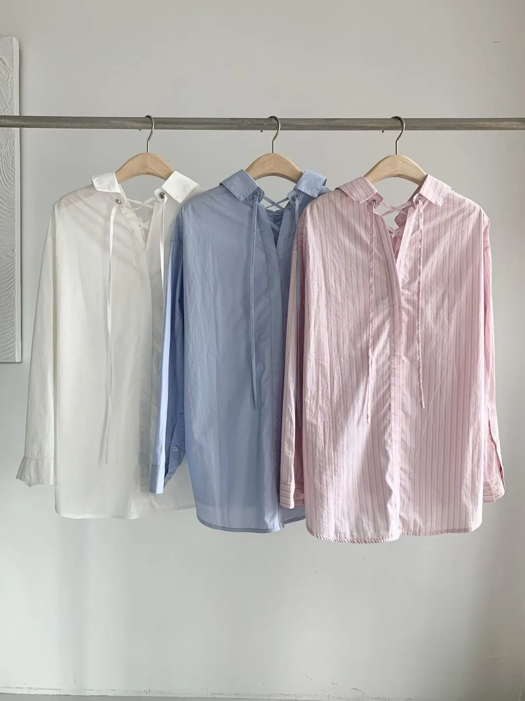 A12 0128(限量特)高檔質感家兩面穿綁帶襯衫