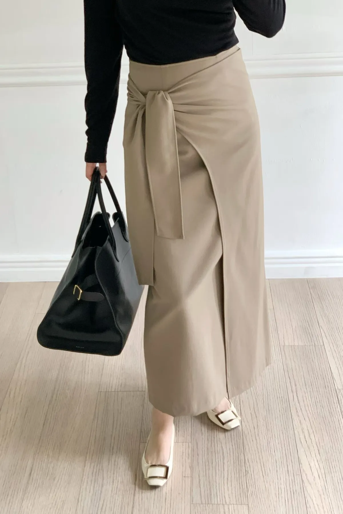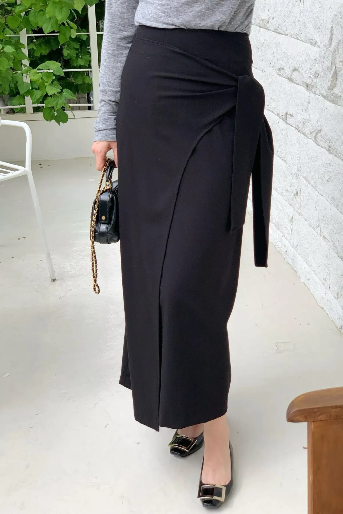 A13 0128(限量特)高檔質感家前開衩綁帶半裙2色(S/M)