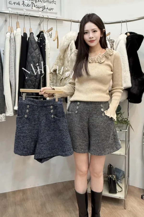 A17 0128設計棟雙胞胎歐膩家側排釦A字小香短褲2色