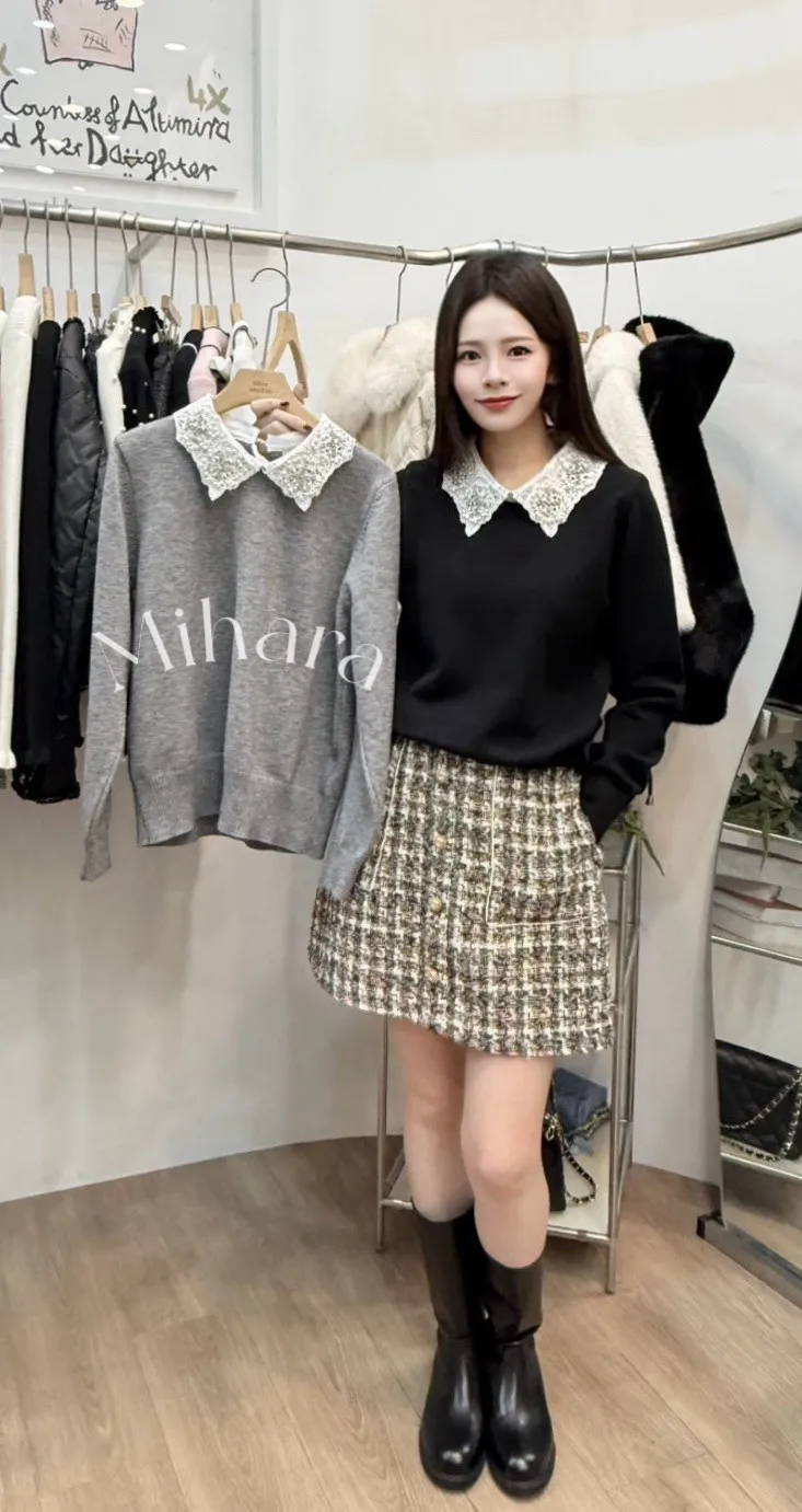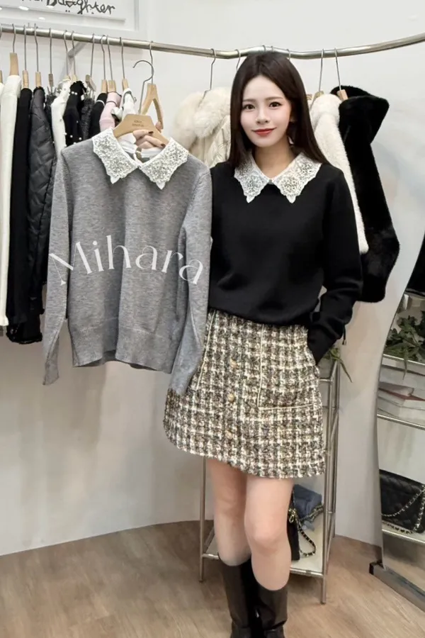 A20 0128設計棟雙胞胎歐膩家蕾絲立領針織衫2色