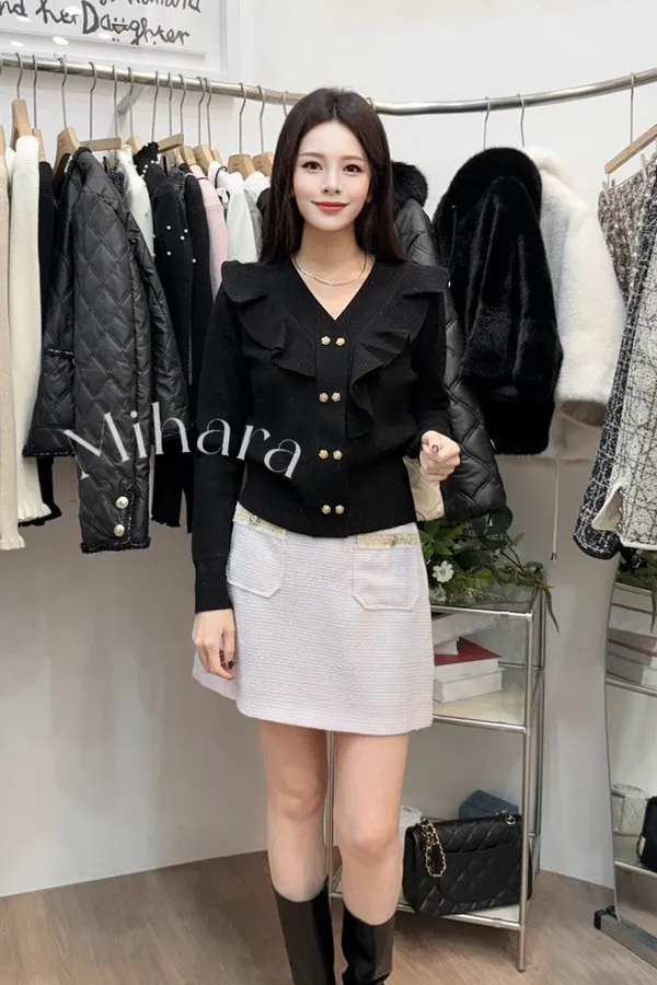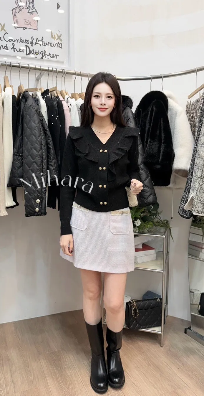 A30 0128(限量特)設計棟雙胞胎歐膩家雙排釦荷葉邊V領上衣