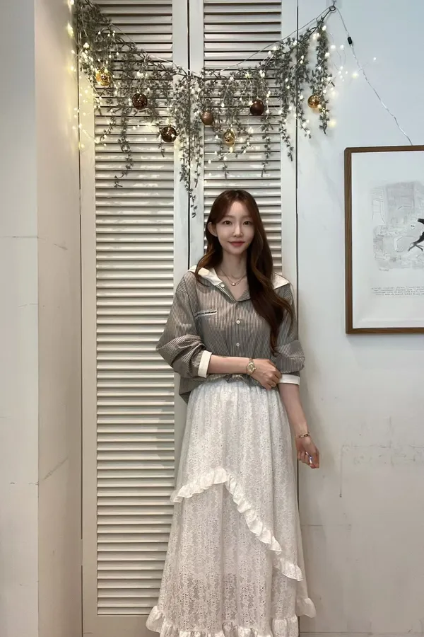 C536仙女歐膩彈性腰圍荷葉蕾絲裙