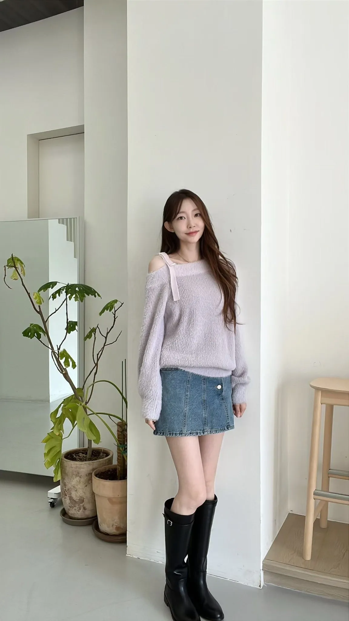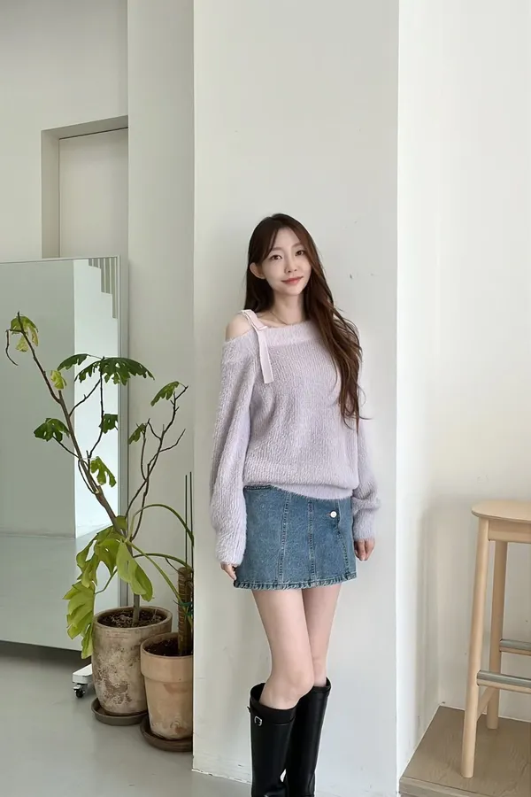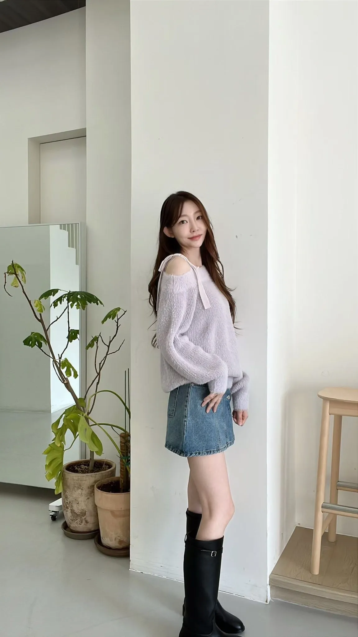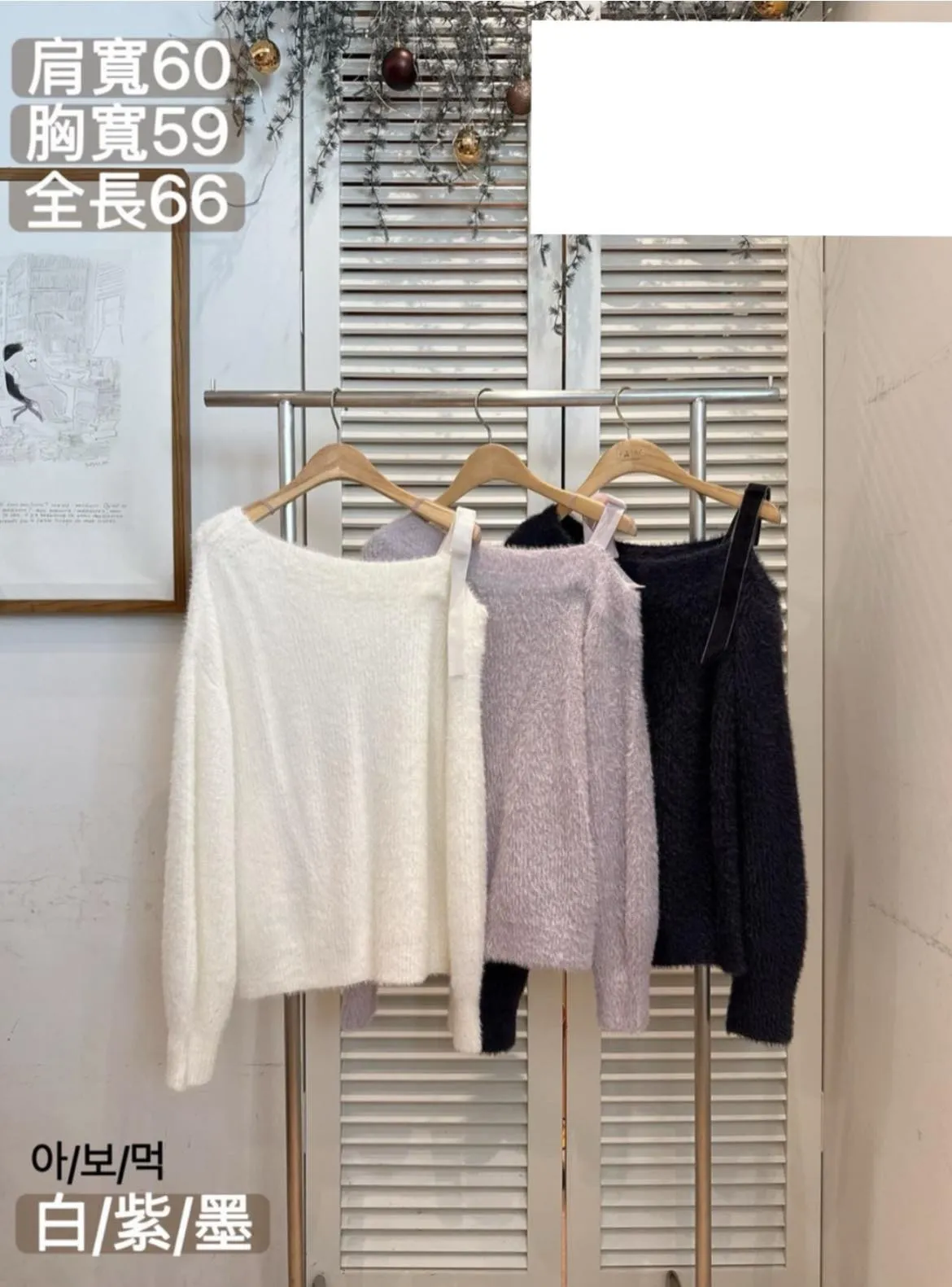 C117仙女歐膩絨露肩蝴蝶結上衣