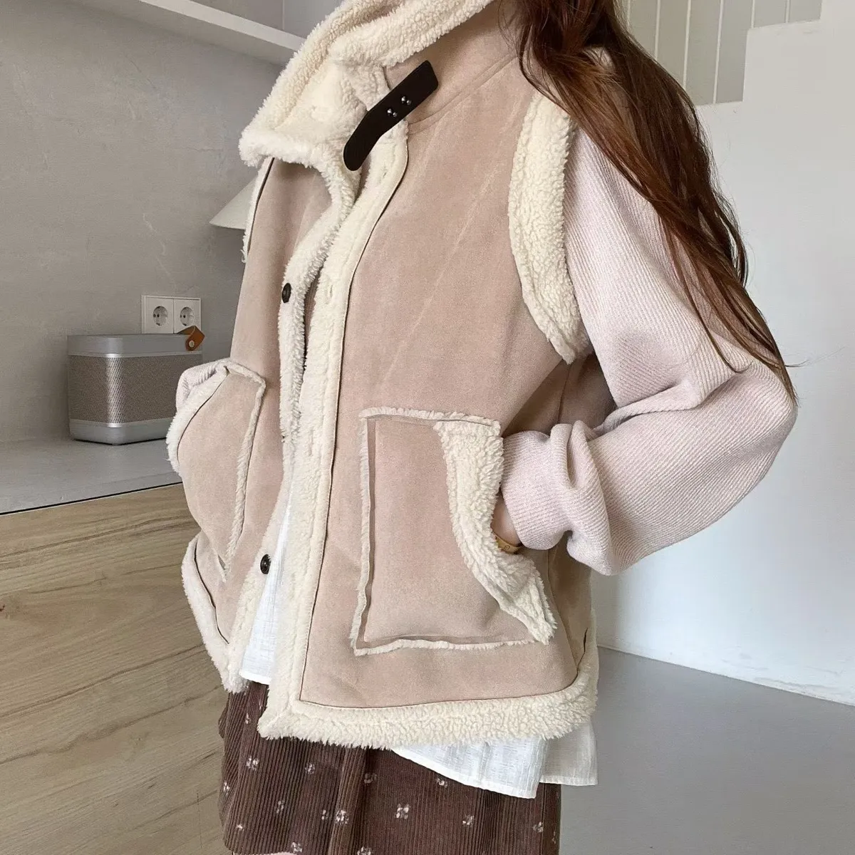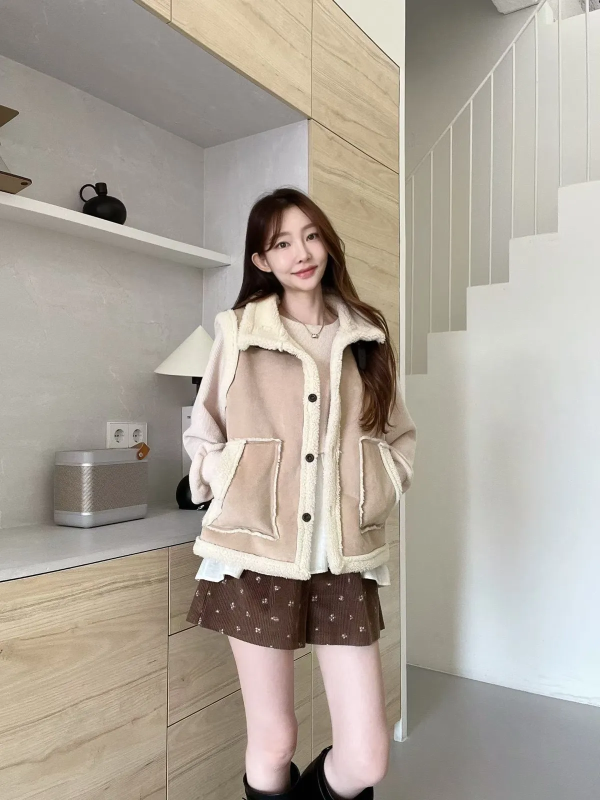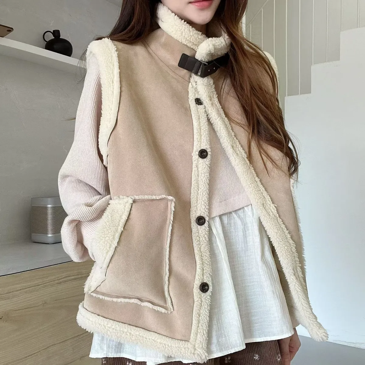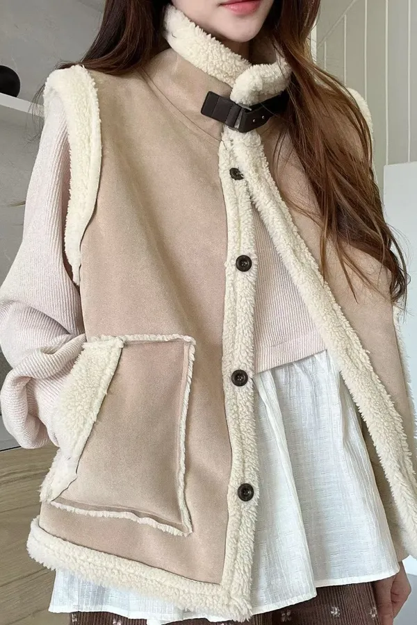 C113仙女歐膩輕麂皮羔毛背心