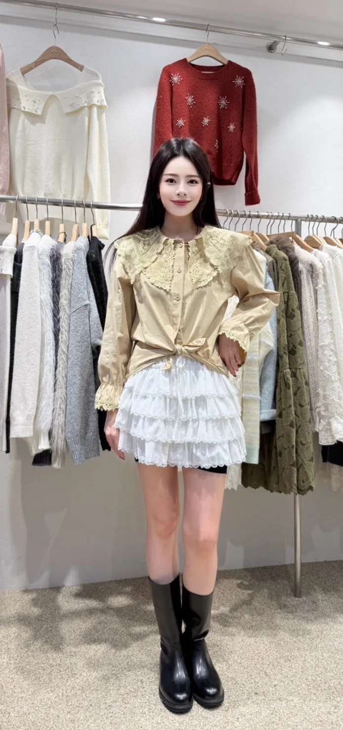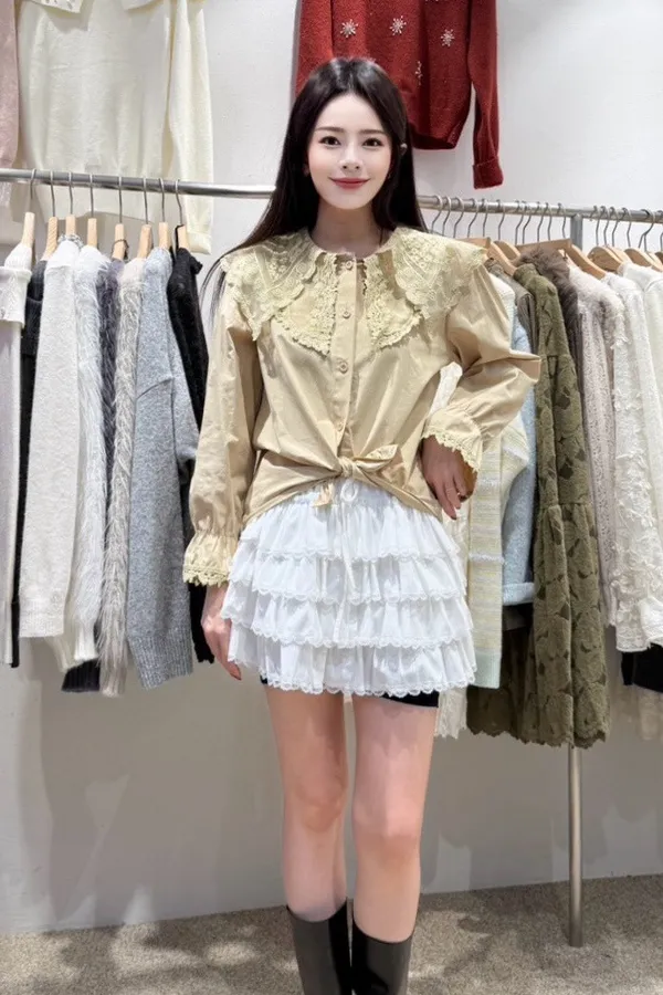 A6 0129(限量特)浪漫蕾絲家雙層蕾絲大領片襯衫