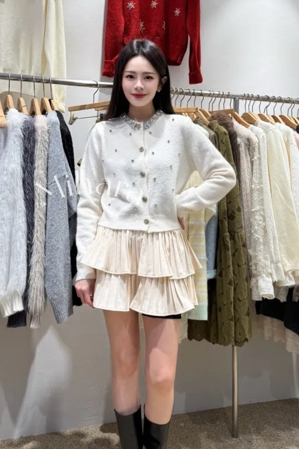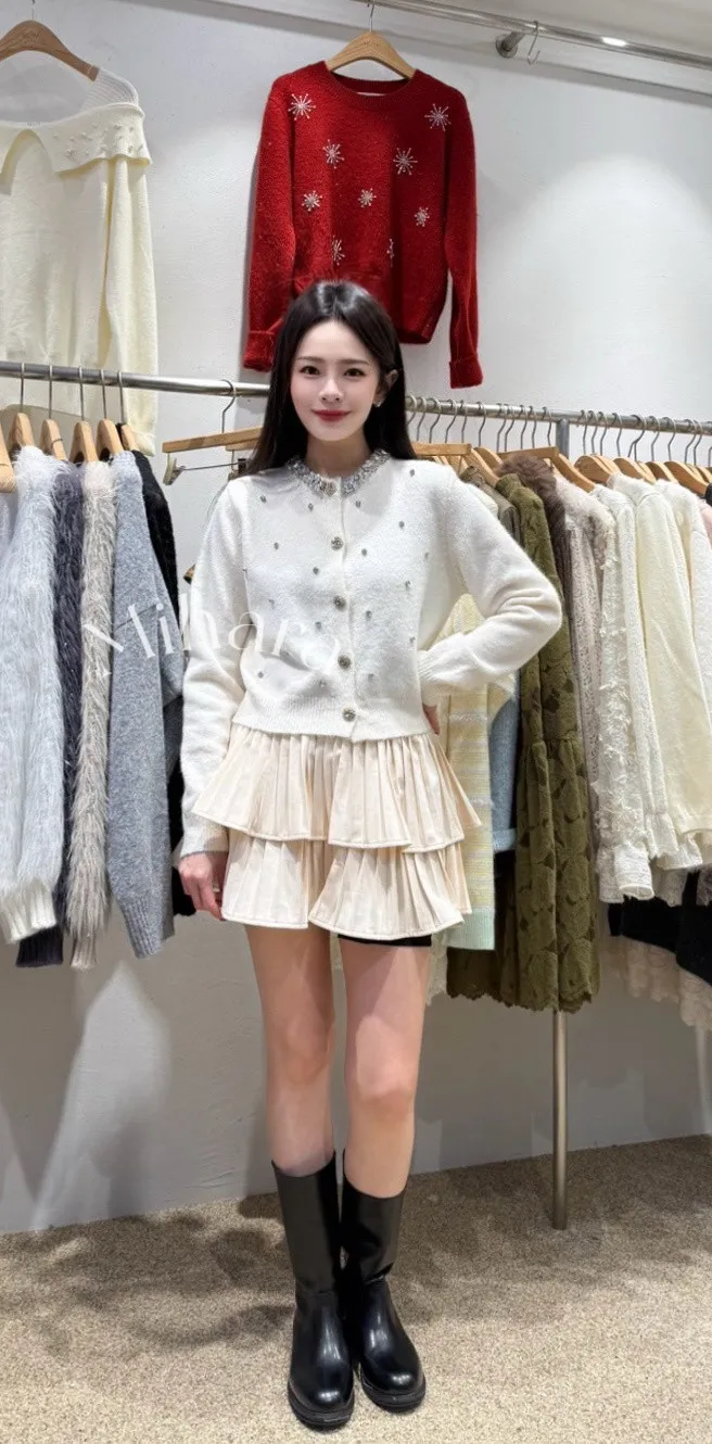 A13 0129(限量特)浪漫蕾絲家拼接小鑽圓領針織衫
