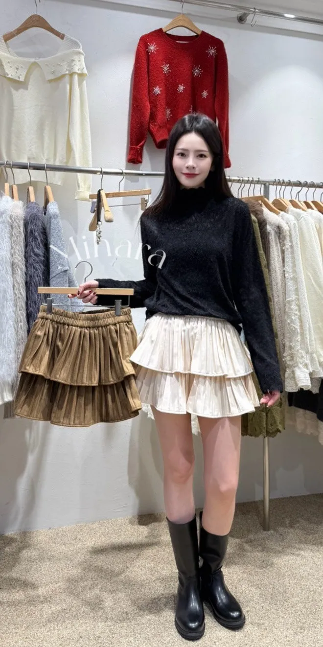 A17 0129(限量特)浪漫蕾絲家雙層絨布蛋糕短裙2色