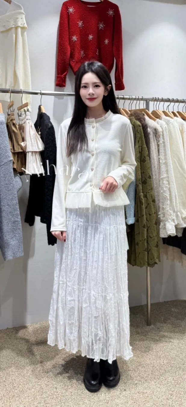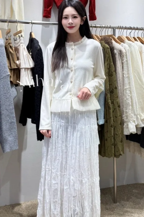 A19 0129(限量特)浪漫蕾絲家拼接雪紡圓領針織衫