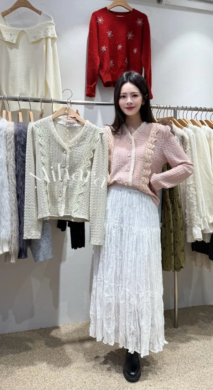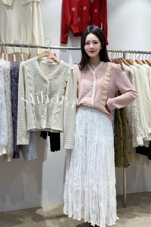 A21 0129(限量特)浪漫蕾絲家拼接布蕾絲V領雪紡上衣2色