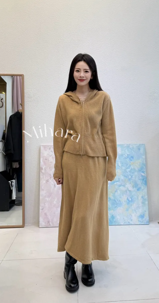 A35 0129(限量特)拉拉家連帽針織外套+針織半裙(SET)