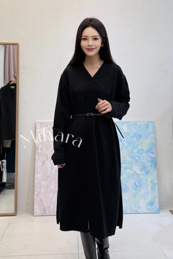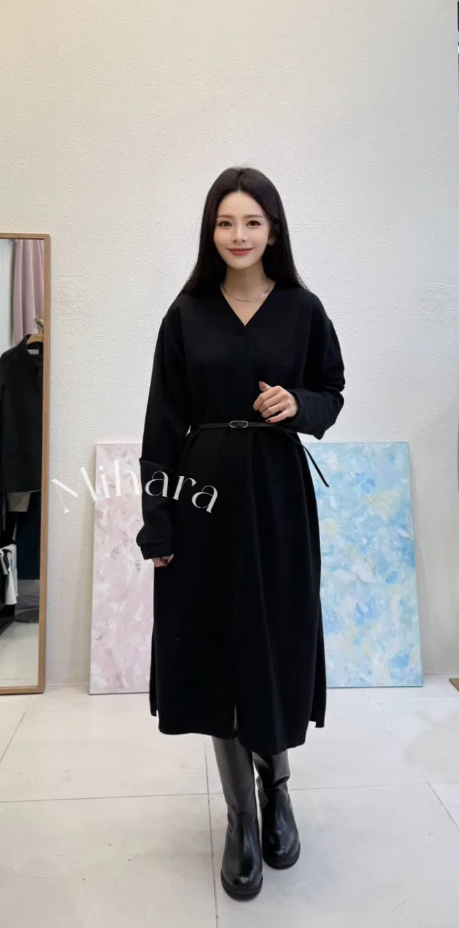 A40 0129(限量特)拉拉家開衩V領針織洋裝附腰帶