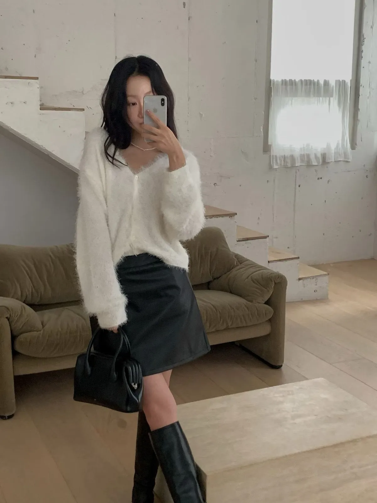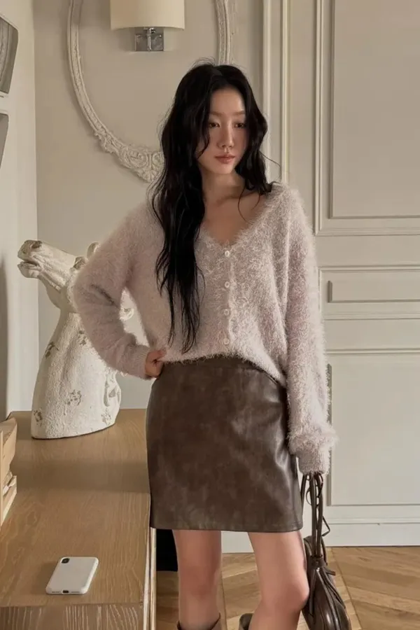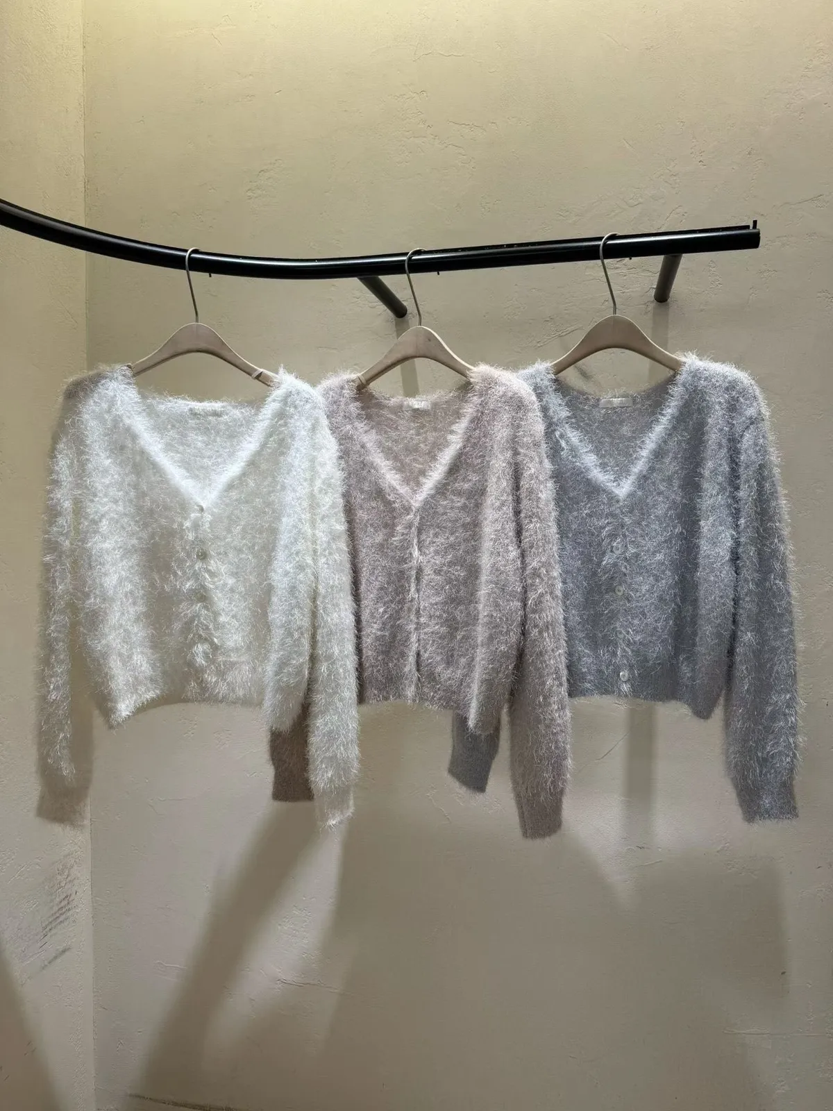 C1字母家長毛毛V領排釦上衣