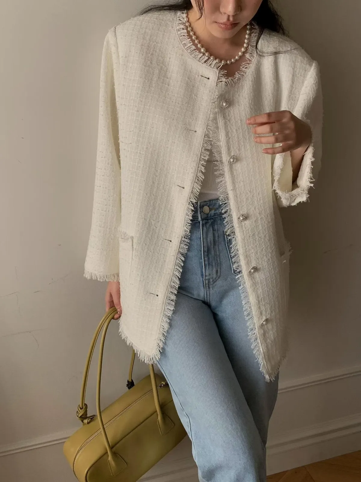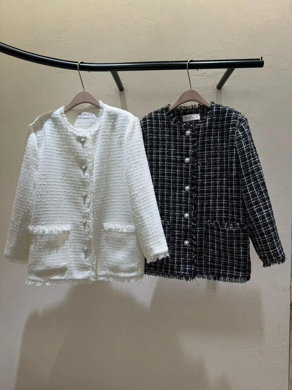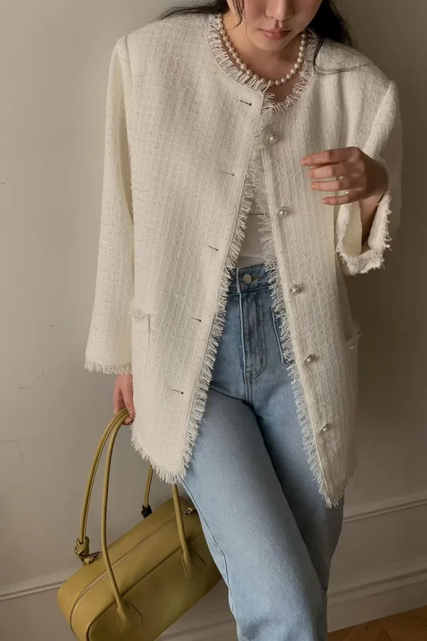 C22字母家細緻格紋珍珠扣小香外套